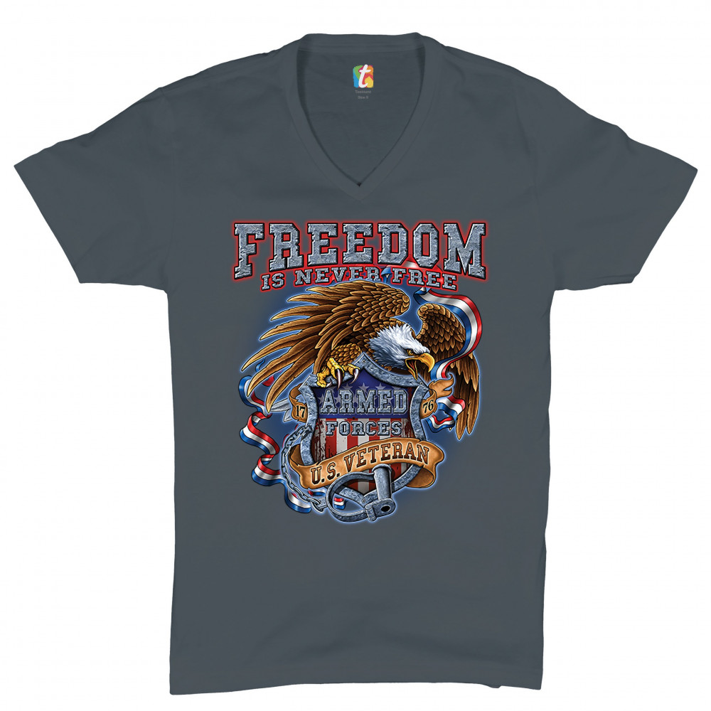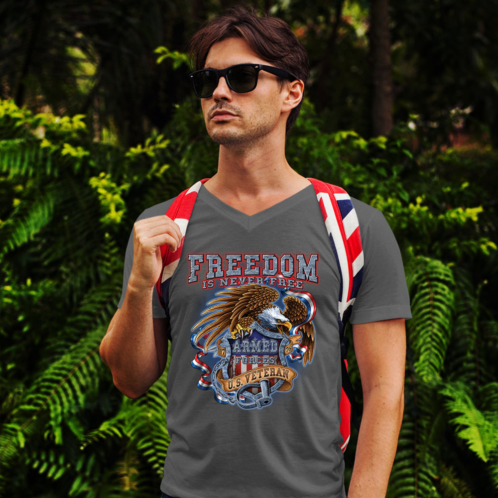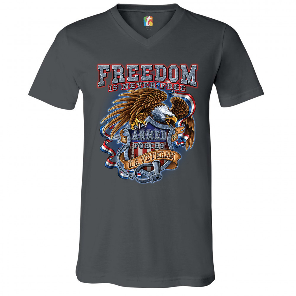 FREEDOM IS NEVER FREE v-neck t-shirt u.s. veteran armed forces military tee charcoal