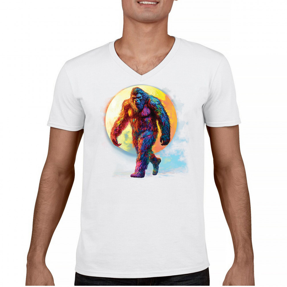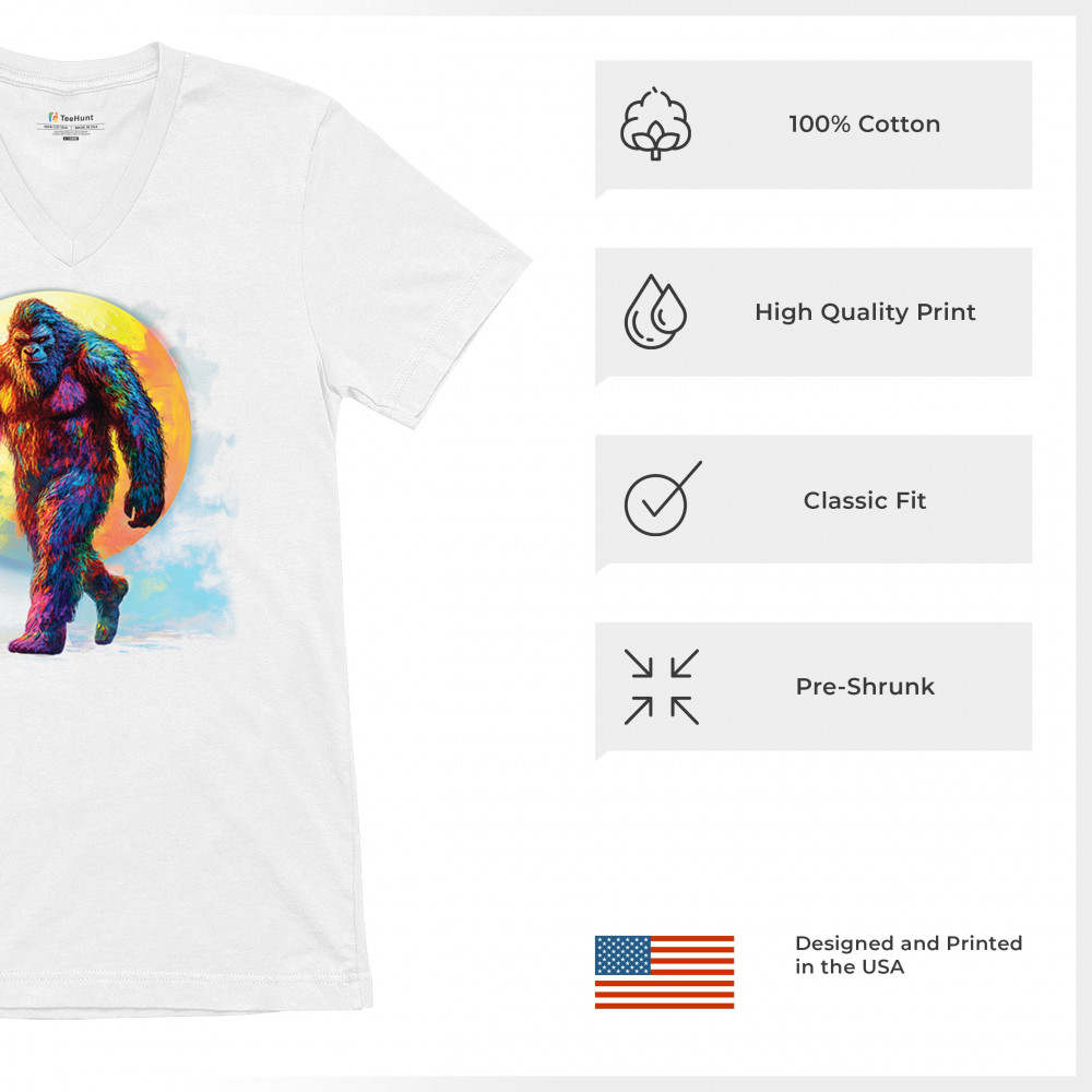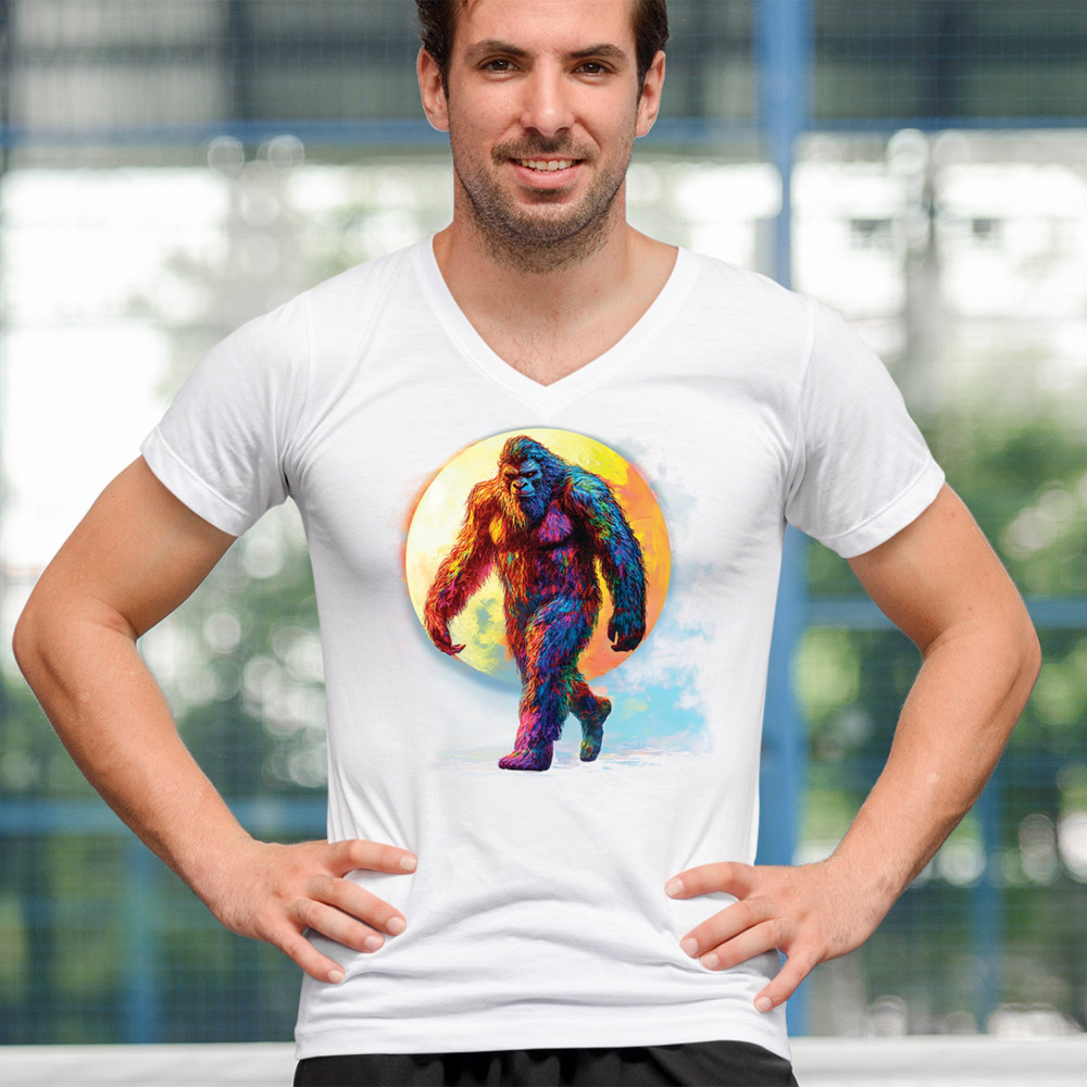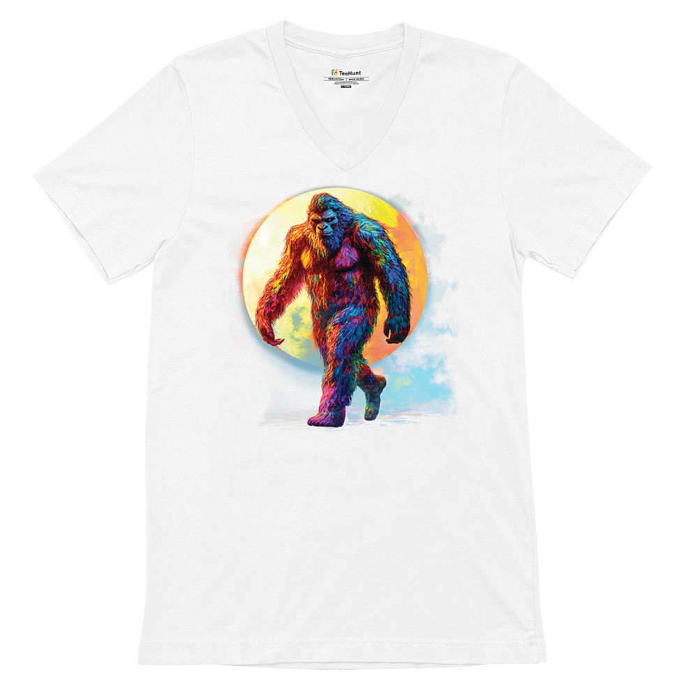 Step into a vivid cryptid dream with this rainbow Bigfoot design. Featuring a multicolor Sasquatch walking past a full moon, it fuses mythical mystery with bold, surreal art. Perfect for festival fans, night hikers, and lovers of the unexplained, this design brings eye-catching style to your wild side.
