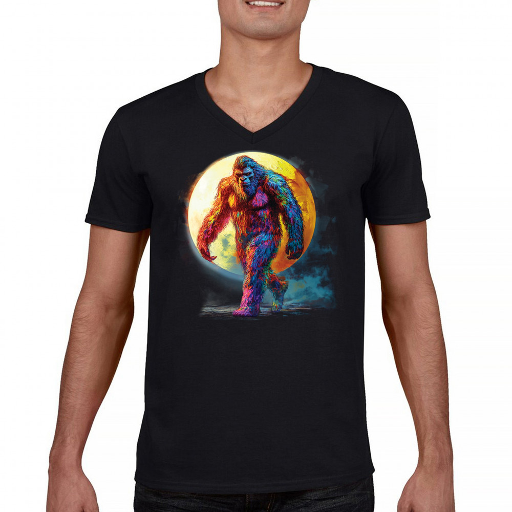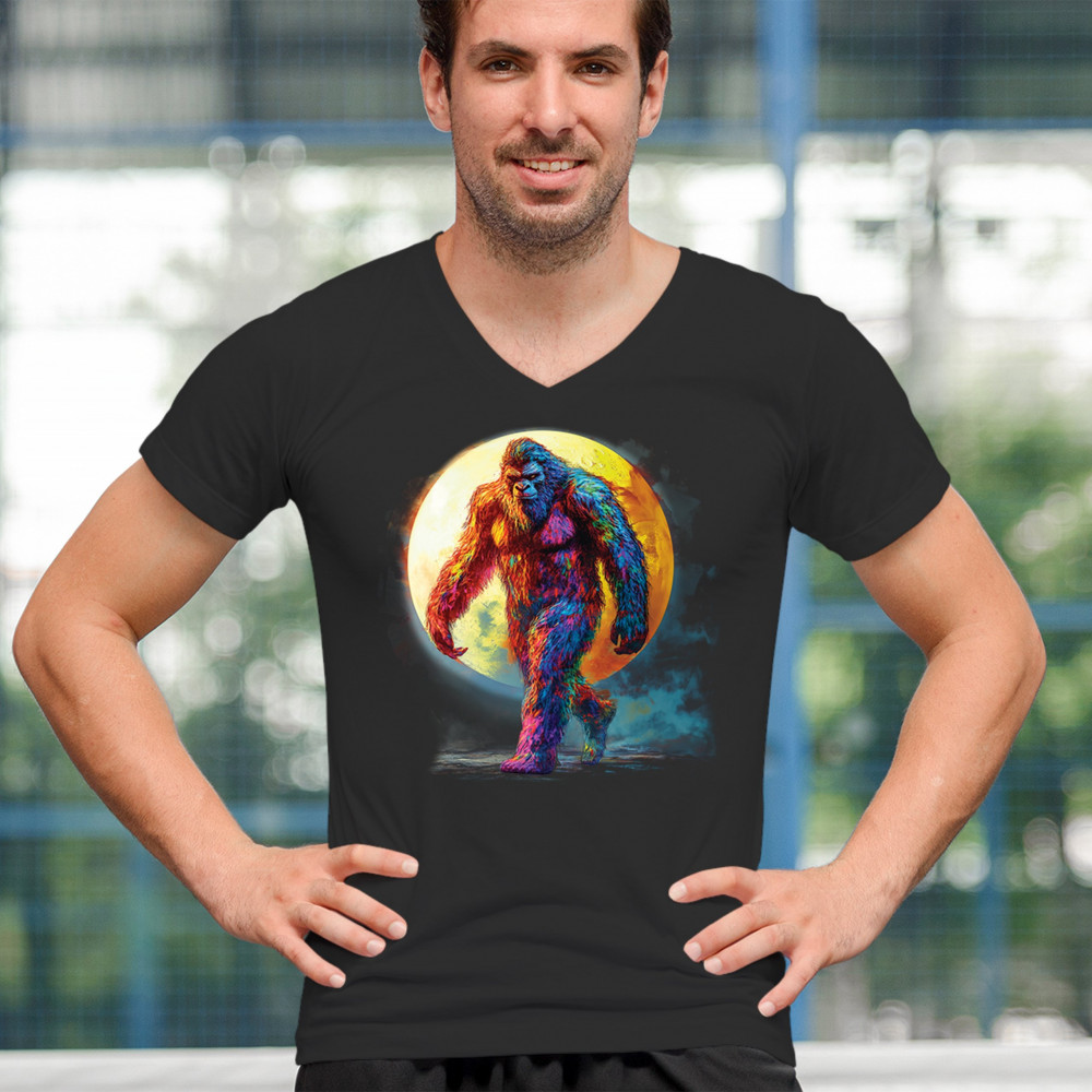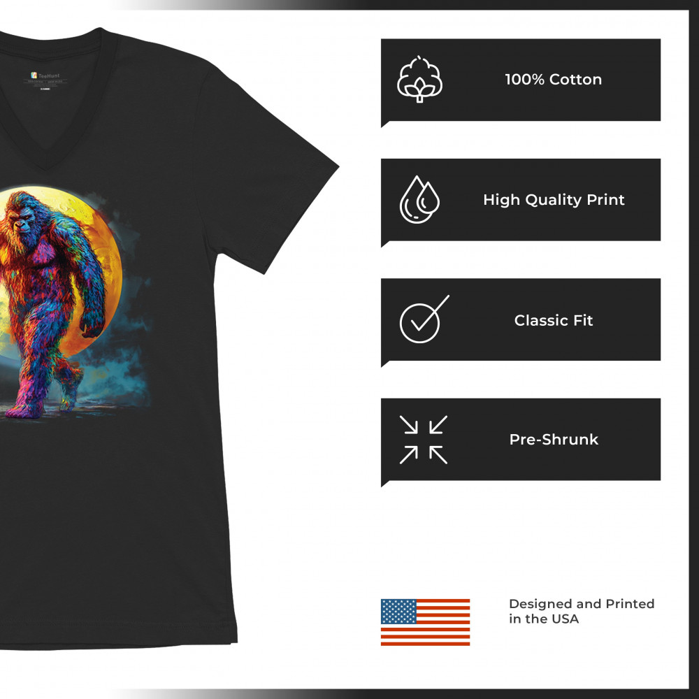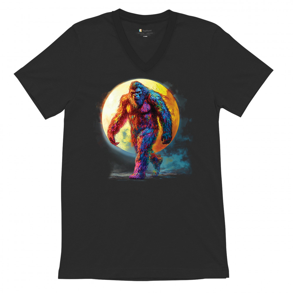 Rainbow Bigfoot under full moon design for cryptid lovers, festival goers, and psychedelic art fans. Bold, surreal, and eye-catching.