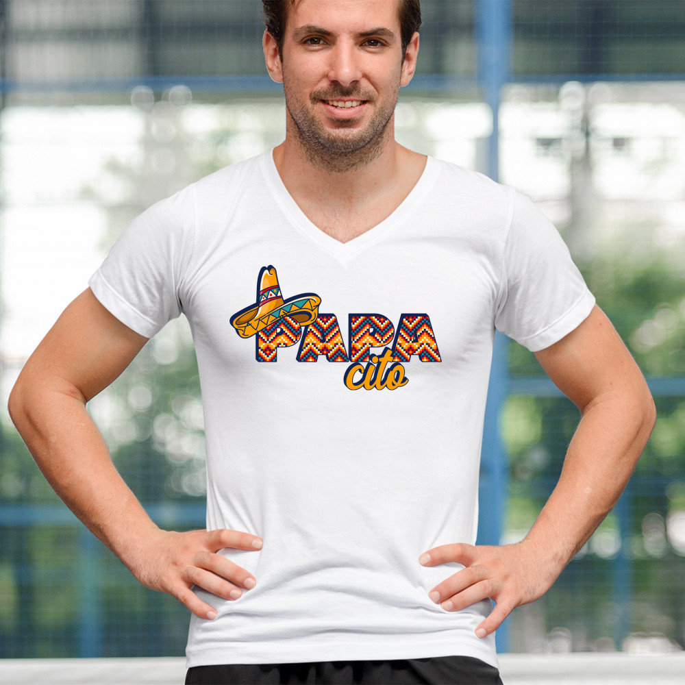 FUNNY PAPACITO CINCO DE MAYO v-neck t-shirt mexican hombre may 5 sombrero tee white