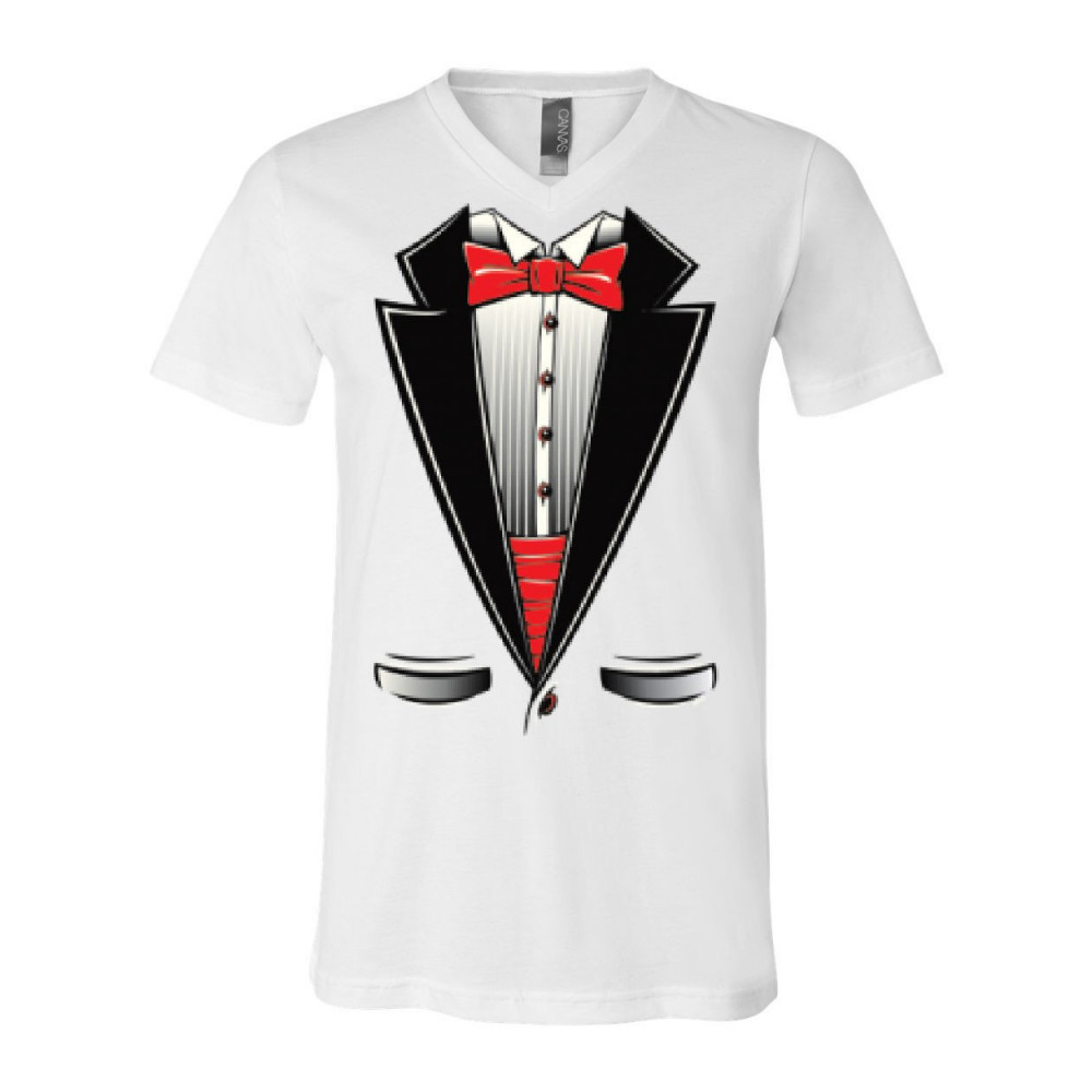 FUNNY TUXEDO BOW TIE v-neck t-shirt tux wedding party tee white