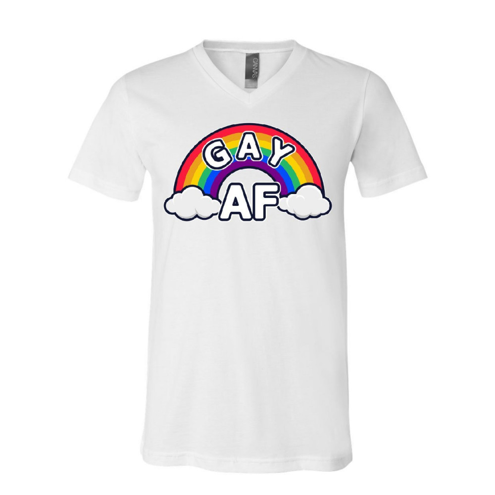 GAY AF RAINBOW gay af v-neck t-shirt rainbow flag lgbtq equal rights pride love wins tee white