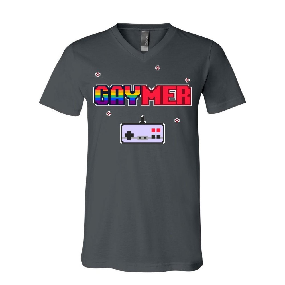QUEER GAYMER CONTROLLER gaymer v-neck t-shirt lgbt queer rainbow gay gaming console controller tee charcoal