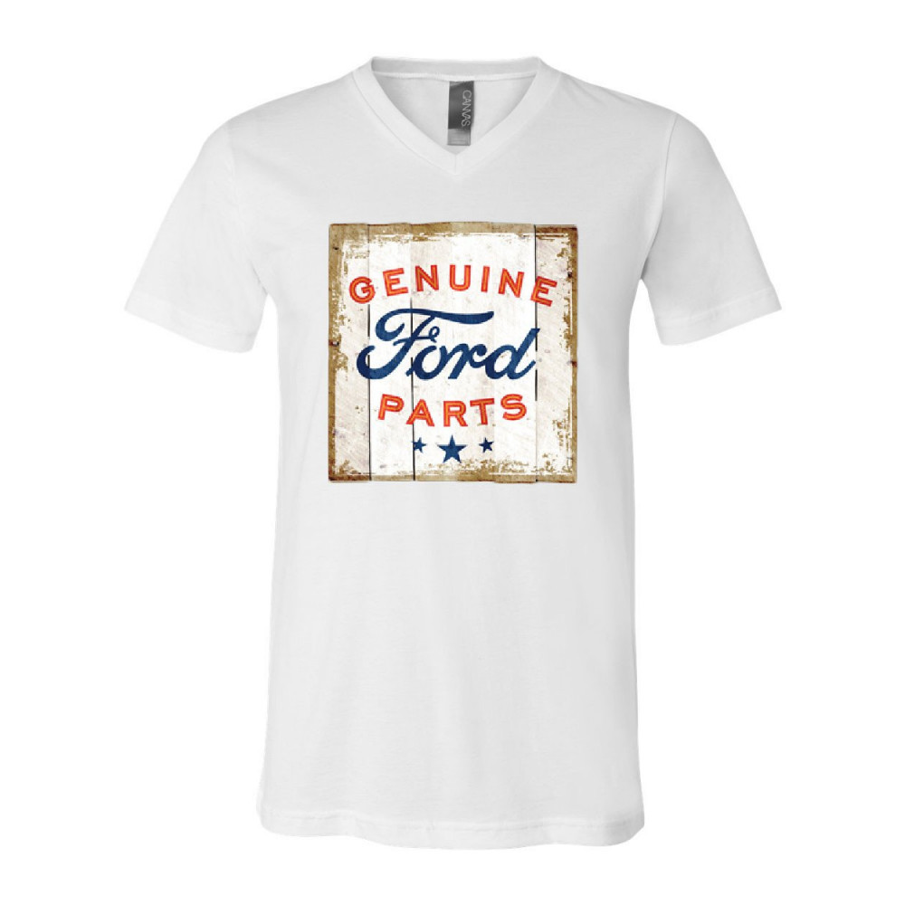 GENUINE FORD PARTS OLD SIGN v-neck t-shirt licensed ford truck tee white