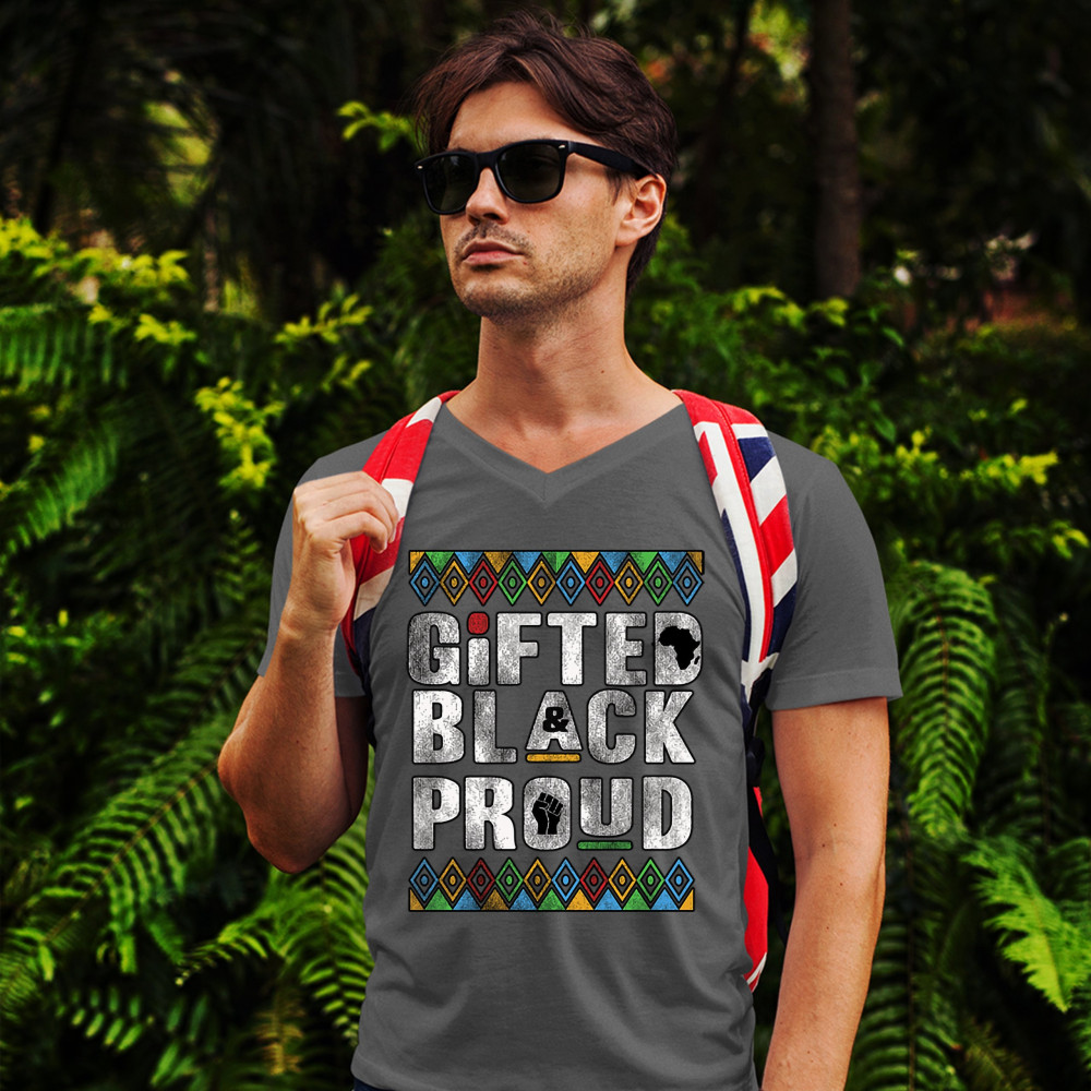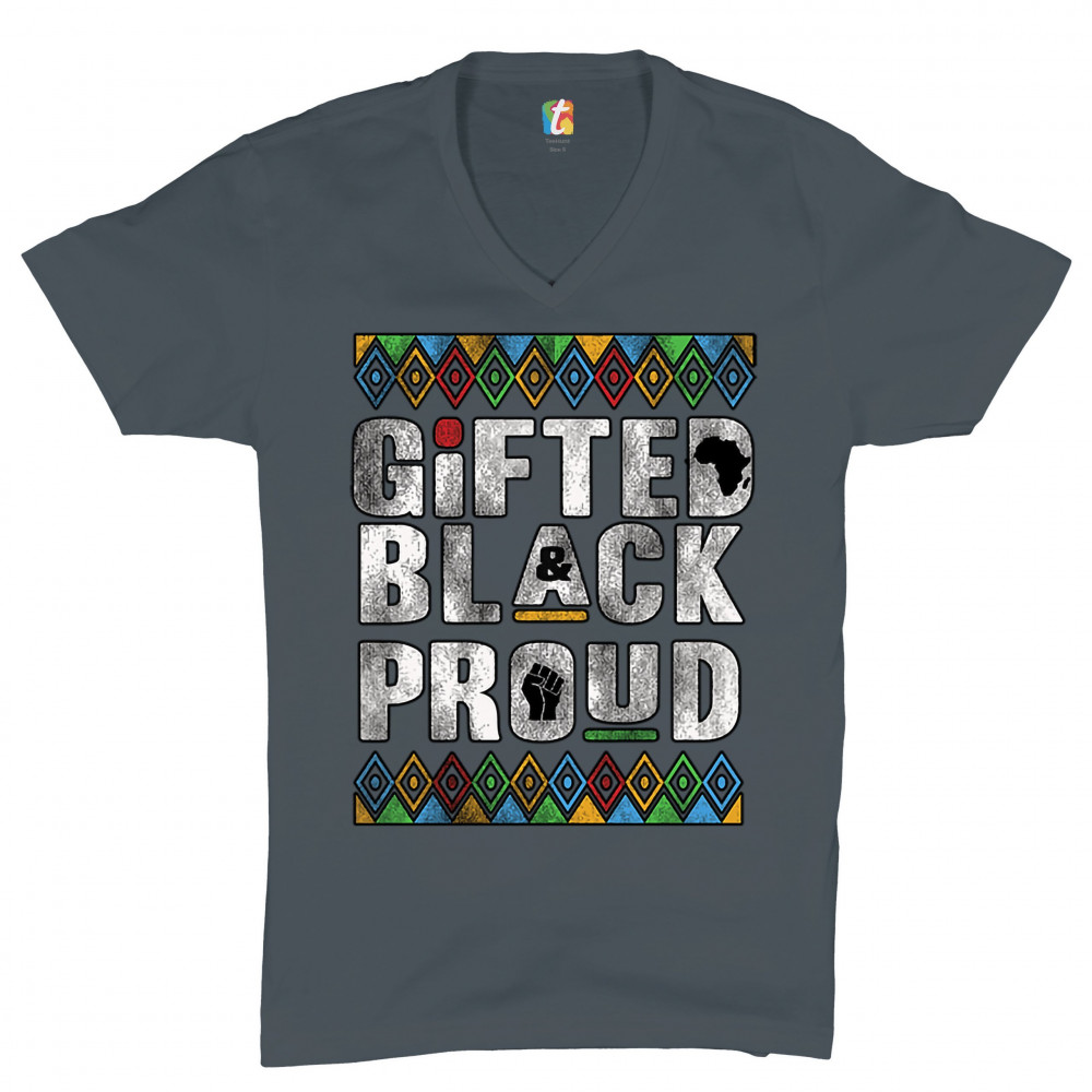 GIFTED BLACK & PROUD v-neck t-shirt african american black lives matter tee charcoal