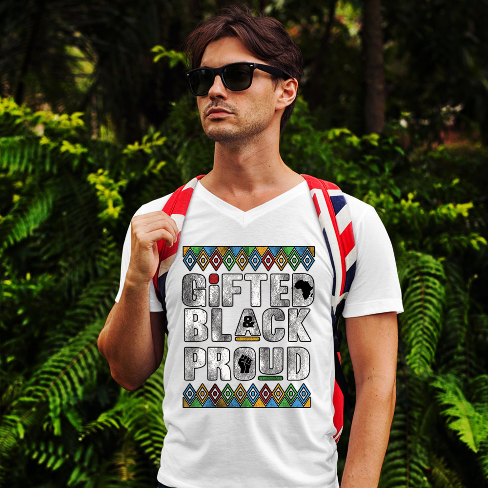 GIFTED BLACK & PROUD v-neck t-shirt african american black lives matter tee white