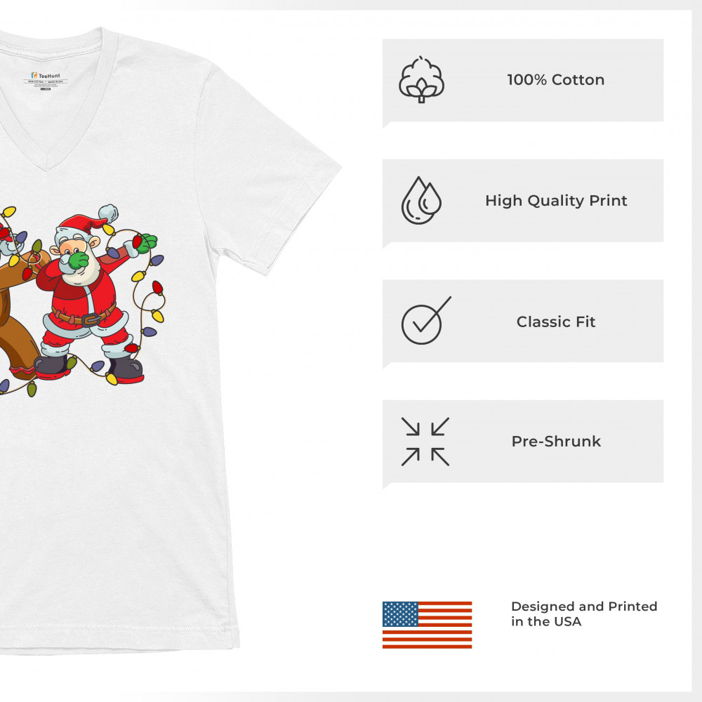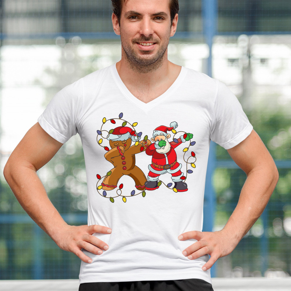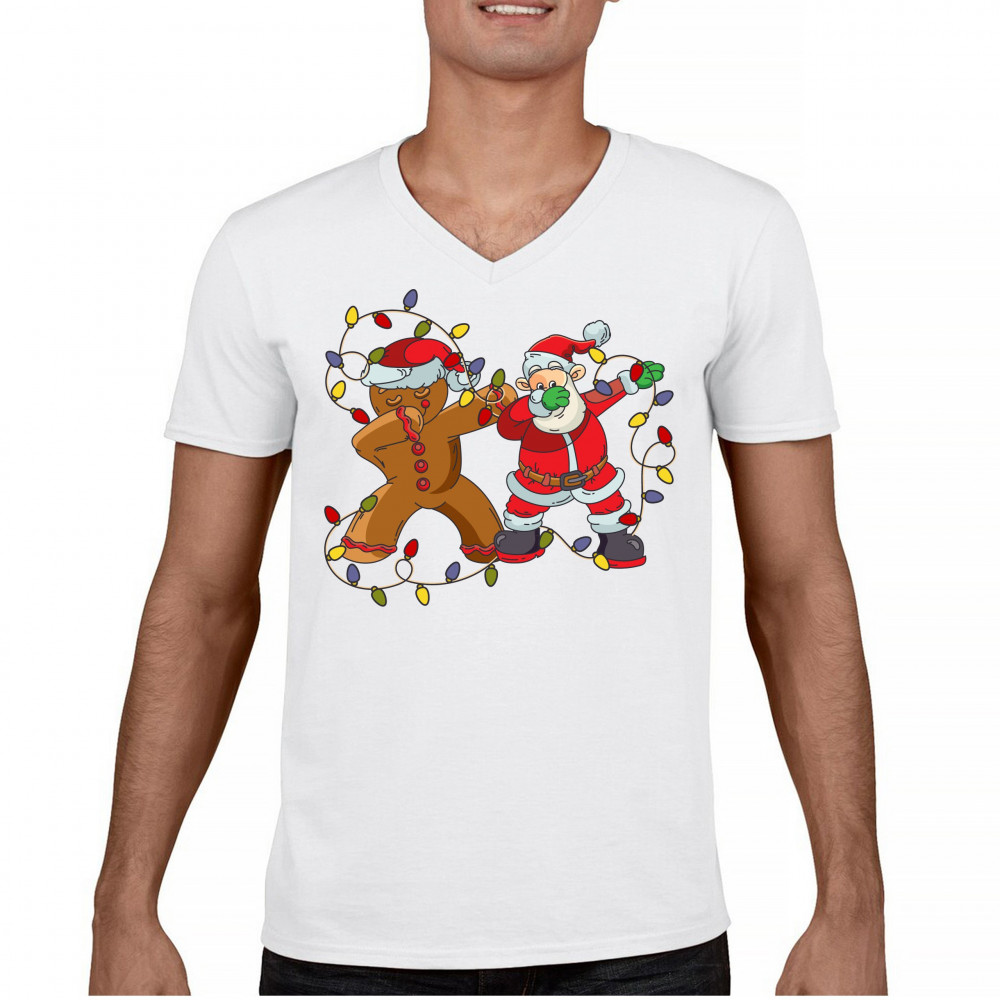 GINGERBREAD MAN AND SANTA CLAUS DAB DANCE v-neck t-shirt merry christmas tee white
