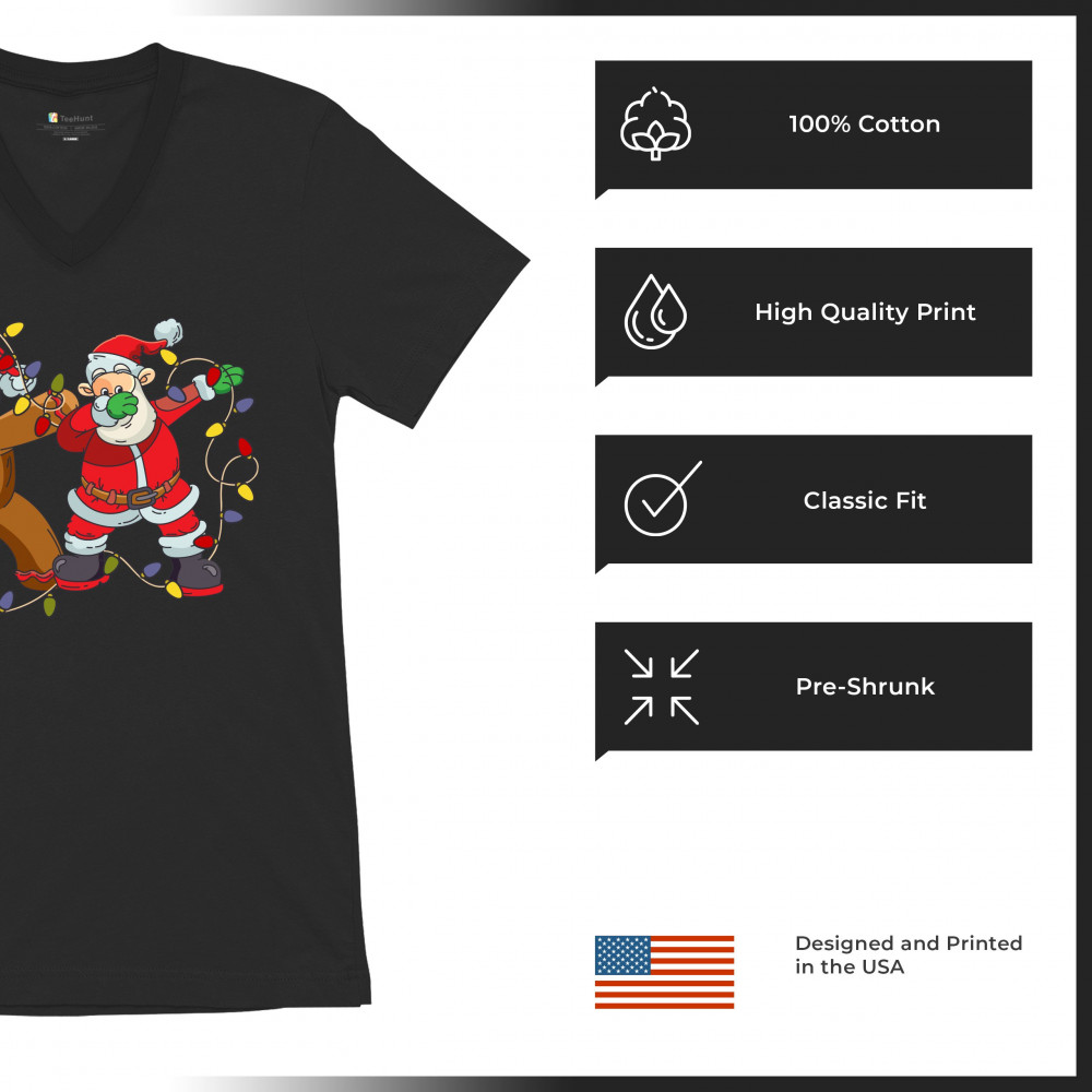 GINGERBREAD MAN AND SANTA CLAUS DAB DANCE v-neck t-shirt merry christmas tee black