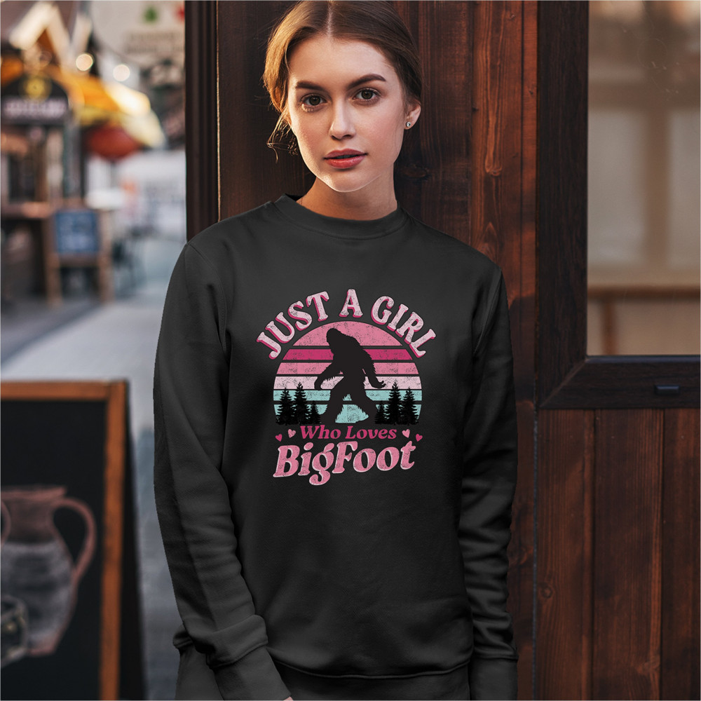 Celebrate your love for all things cryptid with this cute and retro Bigfoot design. Perfect for girls obsessed with Sasquatch, this playful graphic features a pink and teal sunset, ideal for fans, campers, explorers, and believers. A fun gift for paranormal lovers and outdoorsy adventurers alike.