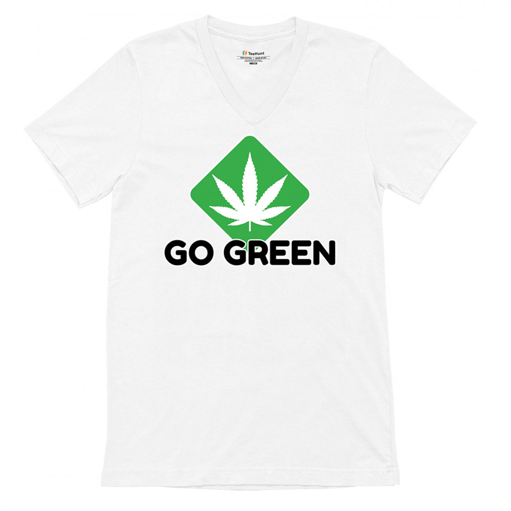 Bold Go Green design with cannabis leaf icon. Perfect for 420 fans, eco-conscious wearers, stoners, and marijuana advocates.