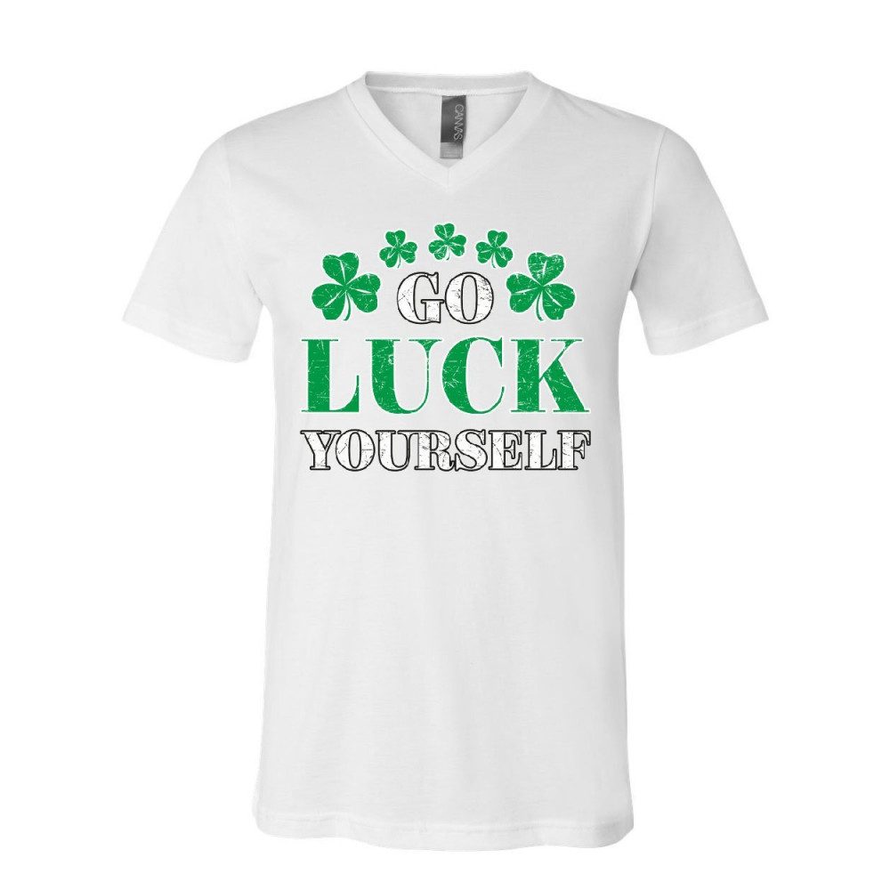 GO LUCK YOURSELF v-neck t-shirt st. patrick's day offensive funny irish tee white