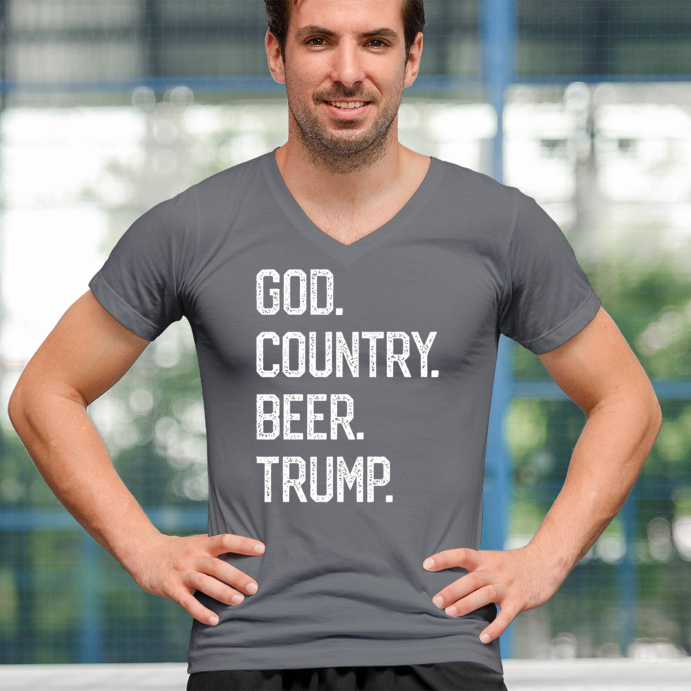 Celebrate God, country, and Trump with this bold design. Perfect for Republicans and America First supporters who stand for freedom and values.