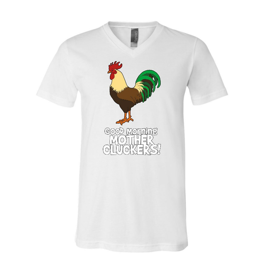GOOD MORNING MOTHER CLUCKERS v-neck t-shirt funny adult humor rooster tee white
