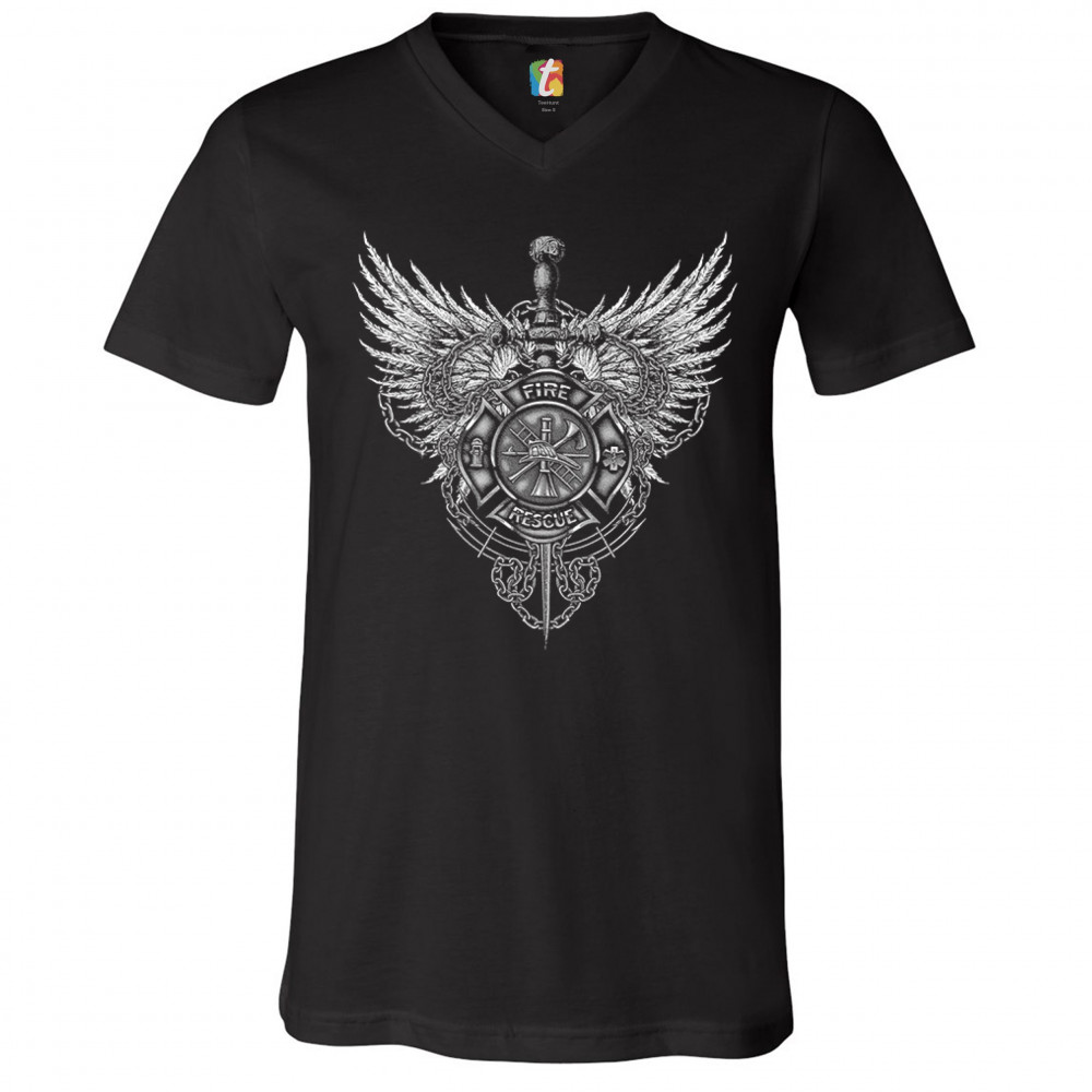 GOTHIC FIREFIGHTER EMBLEM v-neck t-shirt courage honor sacrifice tee black