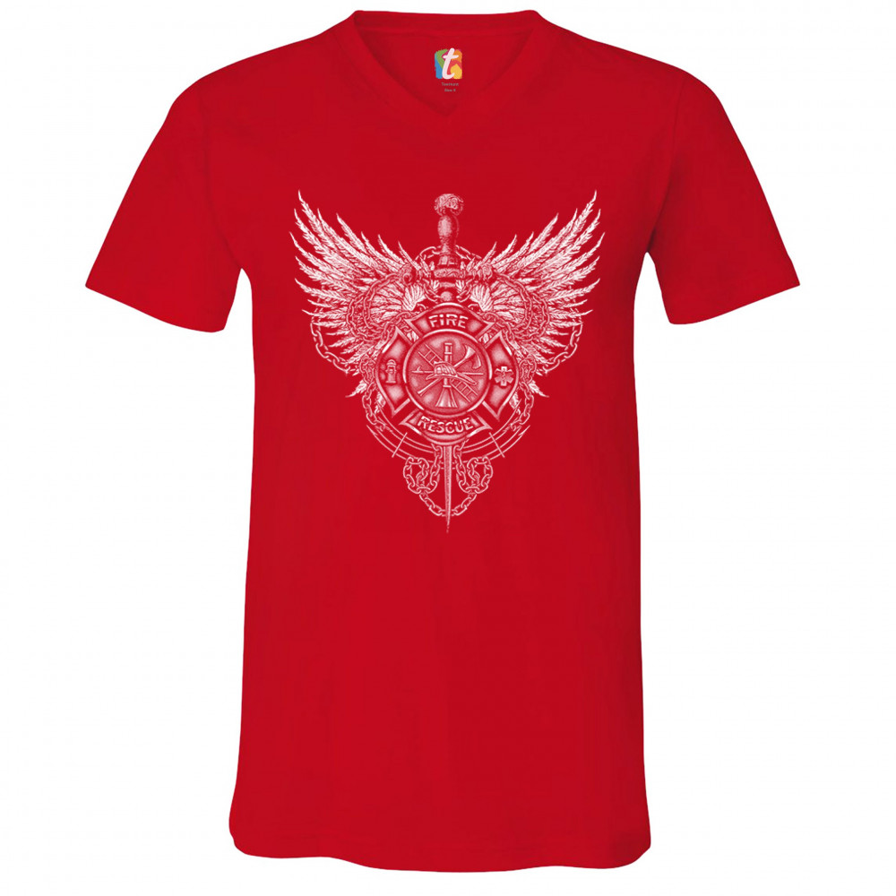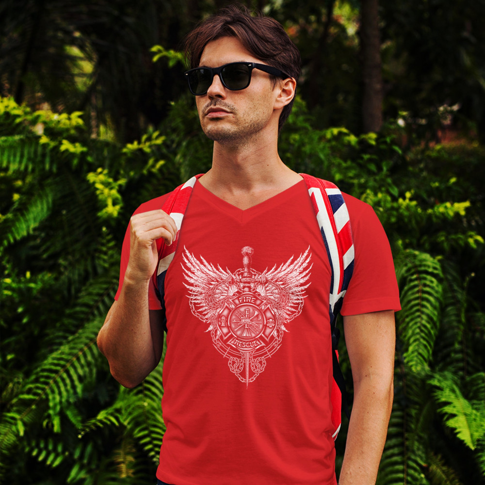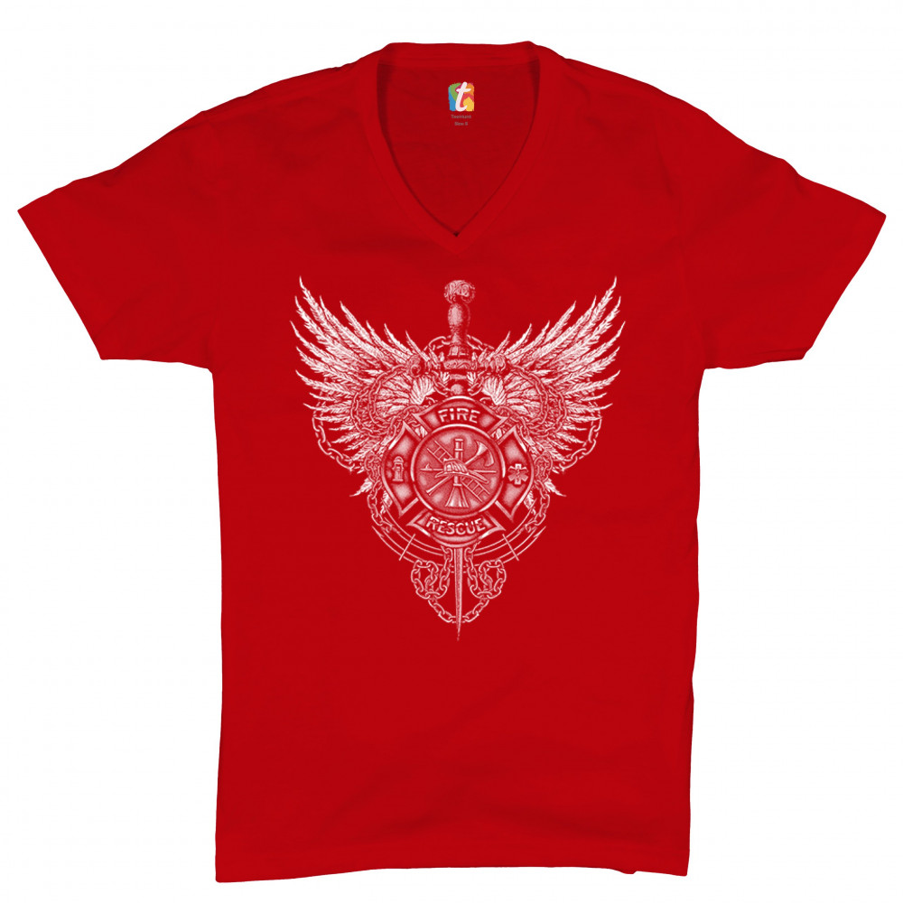 GOTHIC FIREFIGHTER EMBLEM v-neck t-shirt courage honor sacrifice tee red