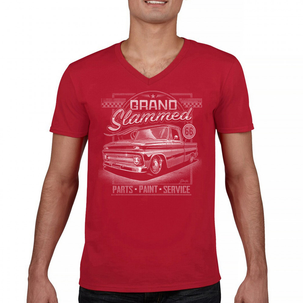 Step back in time with our Grand Slammed vintage truck design, perfect for fans of classic American automotive culture. This shirt showcases a beautifully detailed illustration of a custom truck, making it a standout piece for any car enthusiast. Whether you're attending a car show, hanging out in the garage, or just enjoying a casual day out, this shirt will keep you comfortable and stylish. It's an excellent gift for truck lovers, hot rod aficionados, and anyone with a love for vintage cars. Crafted from premium materials, this shirt offers both durability and softness. Add this unique design to your collection and celebrate the golden era of custom trucks.