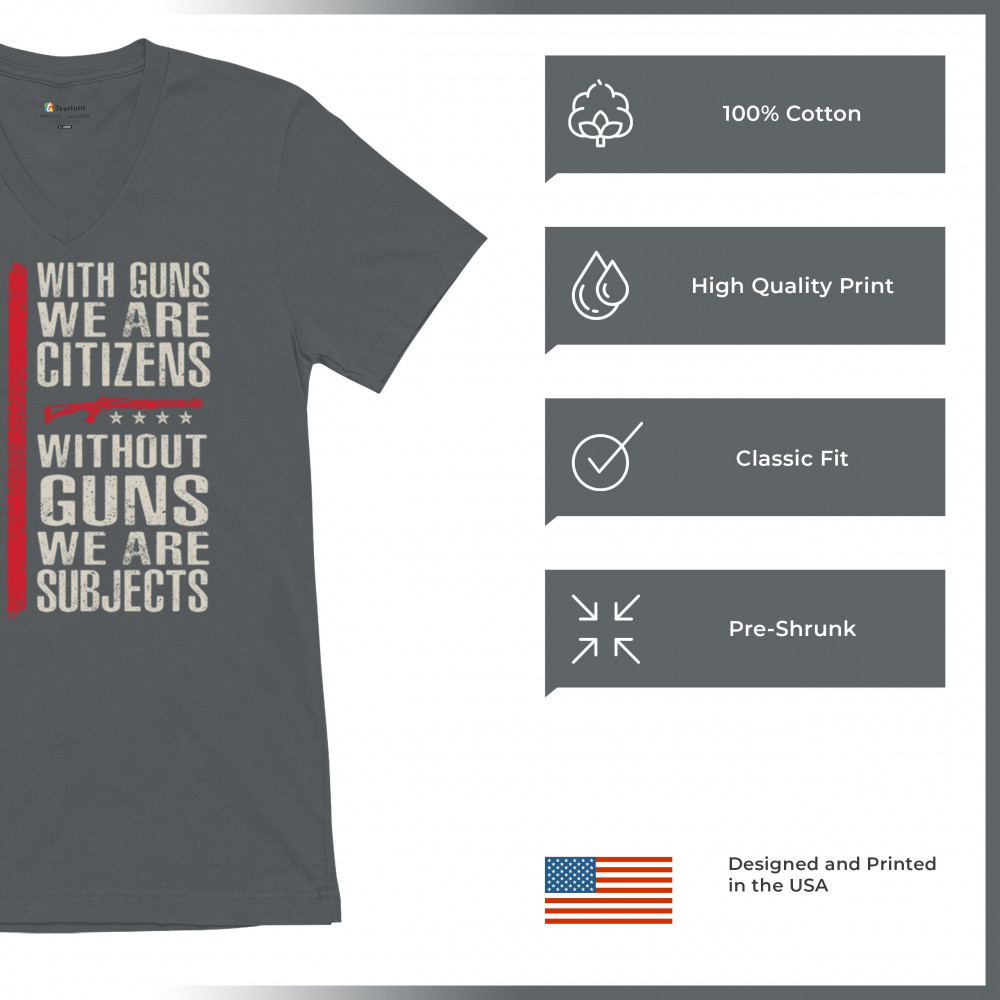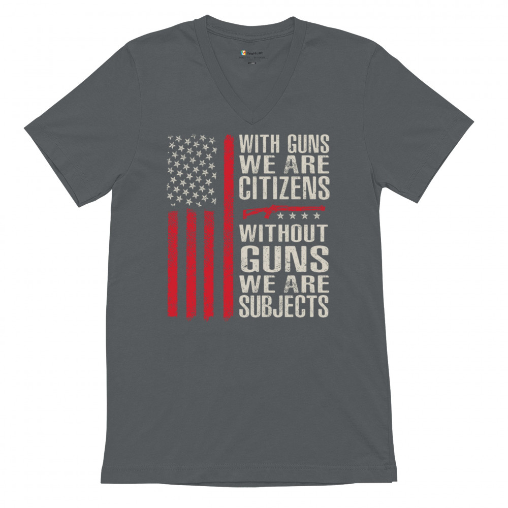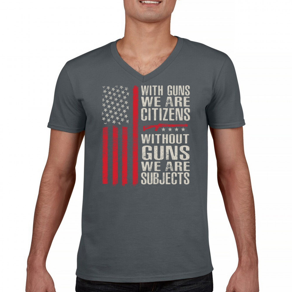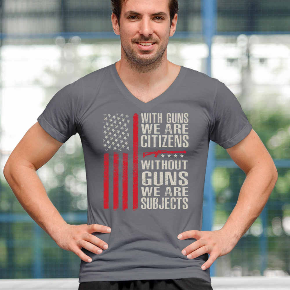 Make your voice heard with this powerful pro-2A design featuring an AR-15 graphic and distressed red American flag. The quote “With Guns We Are Citizens, Without Guns We Are Subjects†speaks directly to the heart of liberty and personal defense. A must-have for patriots, protestors, and gun rights supporters who defend the Constitution.