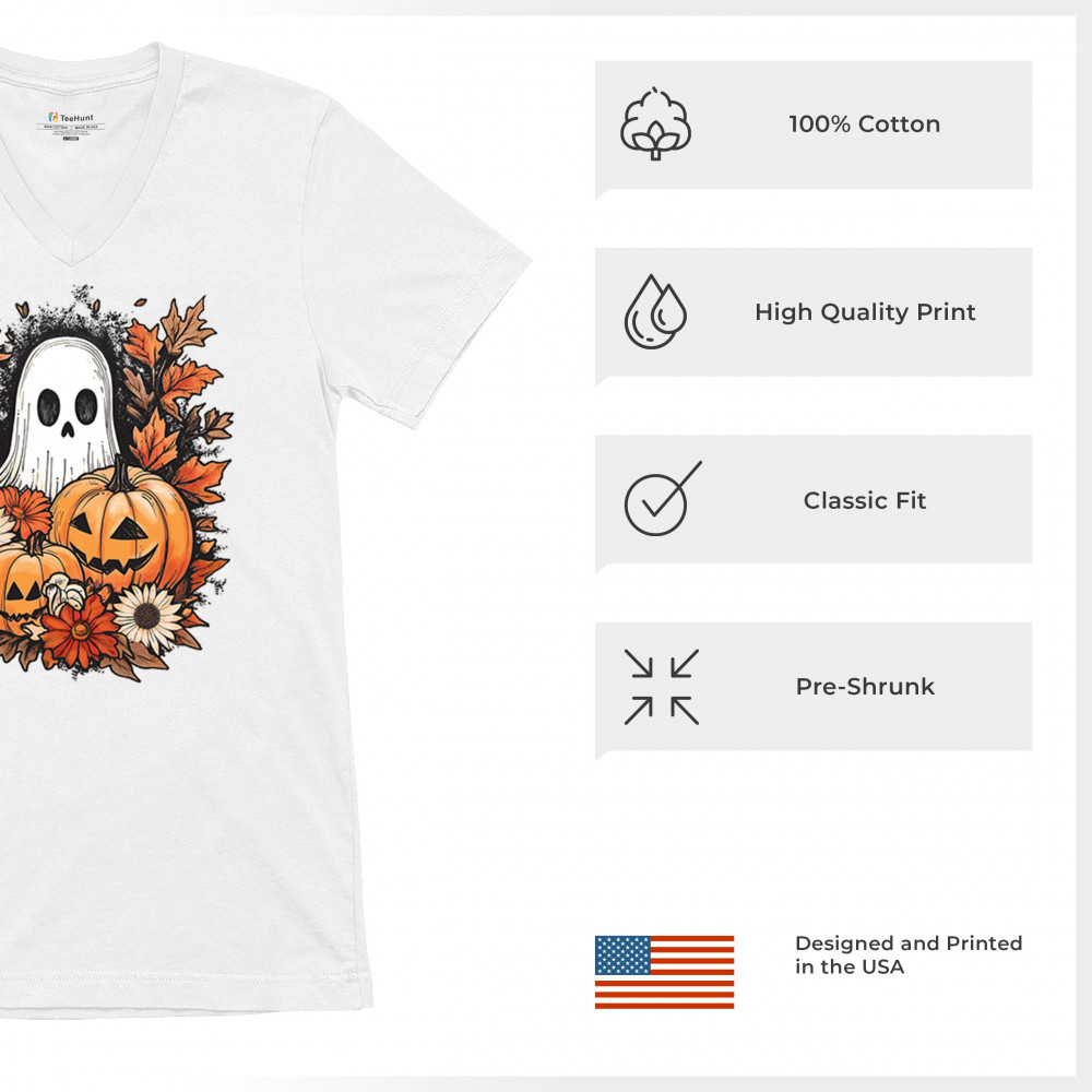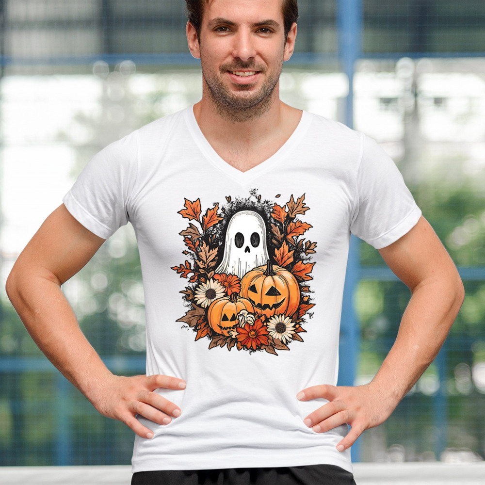 Celebrate the arrival of fall with this delightful design featuring pumpkins, autumn leaves, flowers, and a cute ghost. It's the perfect addition to your Halloween and autumn-themed wardrobe, or even as decor to welcome the fall spirit into your home. The combination of spooky and cozy elements creates a festive yet warm vibe, ideal for Halloween parties, pumpkin patch trips, or just enjoying the beautiful fall season.