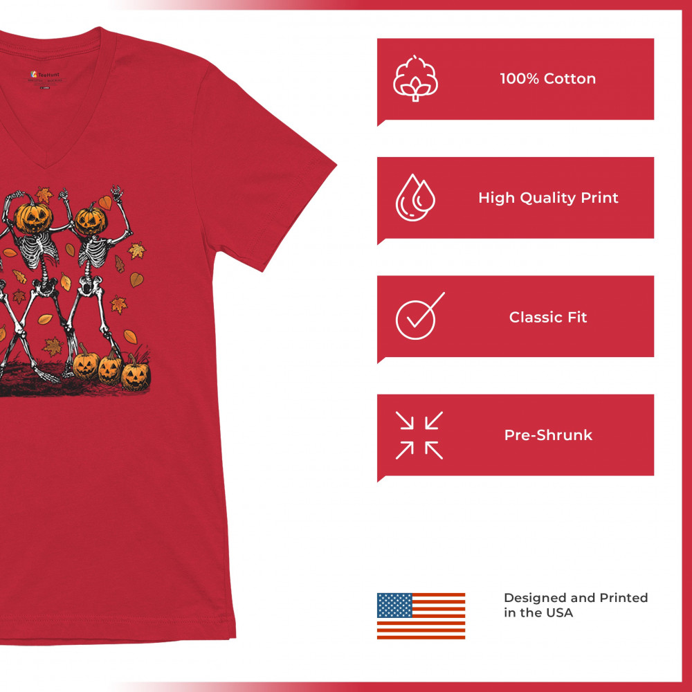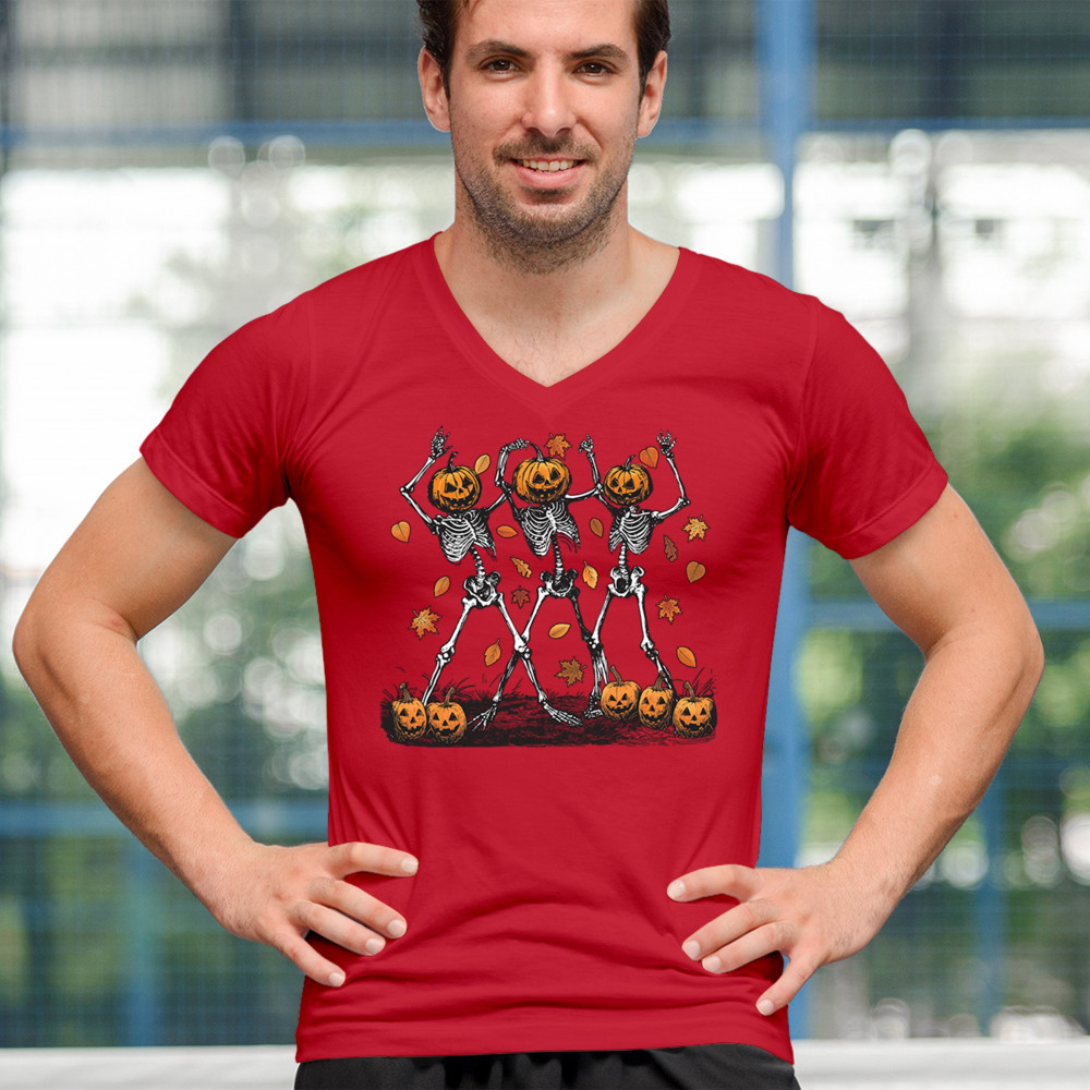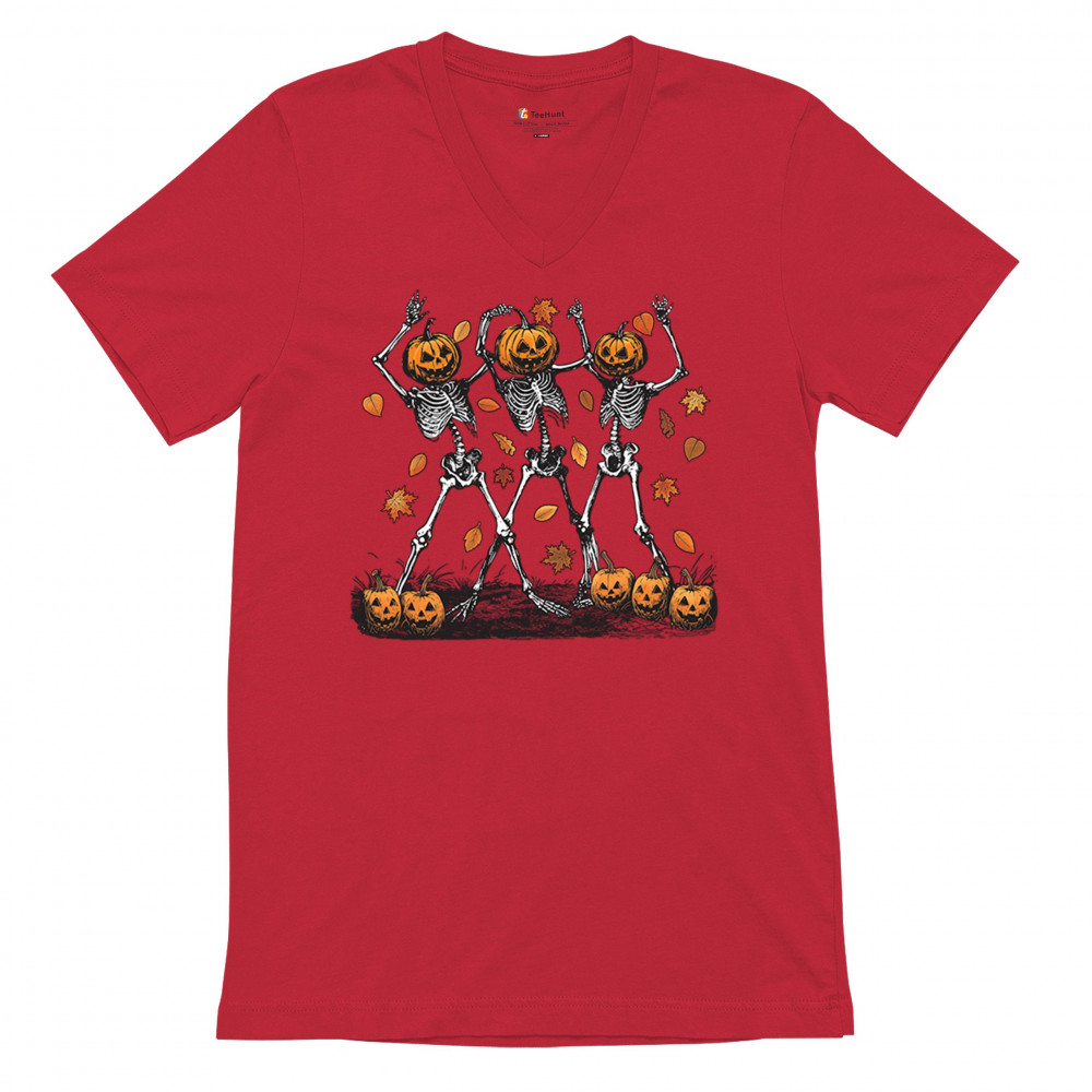Add a touch of spooky fun to your wardrobe with this lively design featuring pumpkin-headed skeletons dancing through a swirl of autumn leaves. Perfect for Halloween parties, trick-or-treating, and fall festivals, this design is a must-have for anyone who enjoys the whimsical side of the spooky season. Made with comfort and quality in mind, this is the perfect apparel for all your October gatherings and events. Wear it to show off your Halloween spirit!