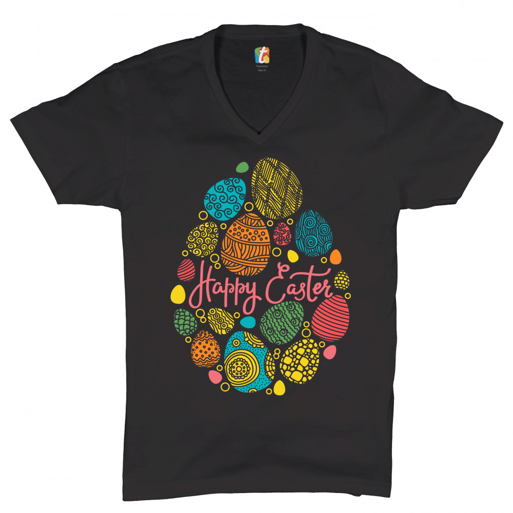 HAPPY EASTER v-neck t-shirt pascha easter eggs jesus ressurection sunday tee black