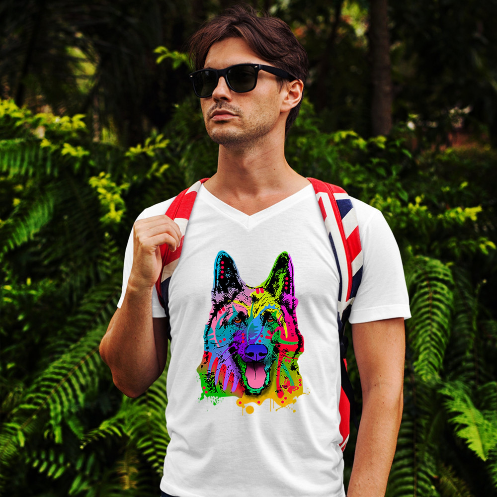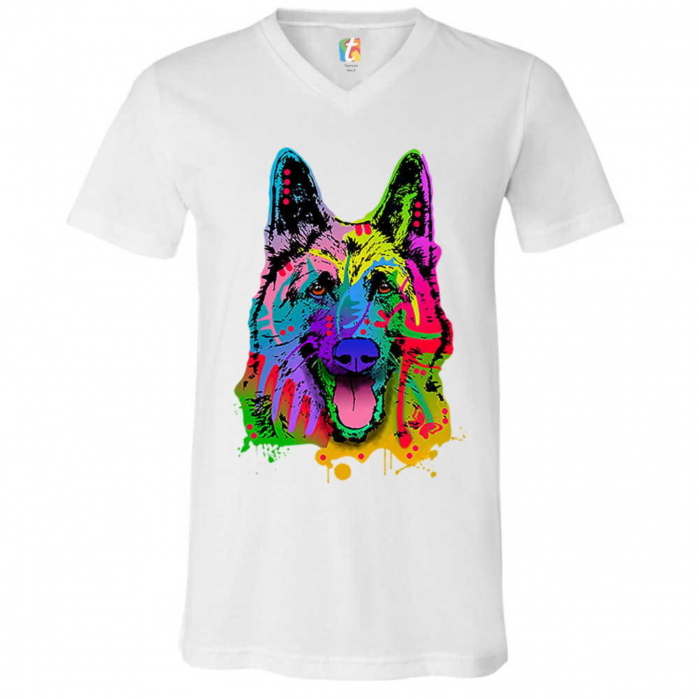 HAPPY GERMAN SHEPHERD v-neck t-shirt andy maxx i love my dog best friend tee white