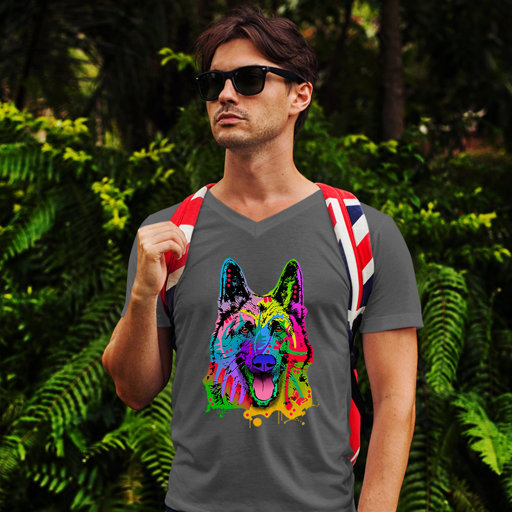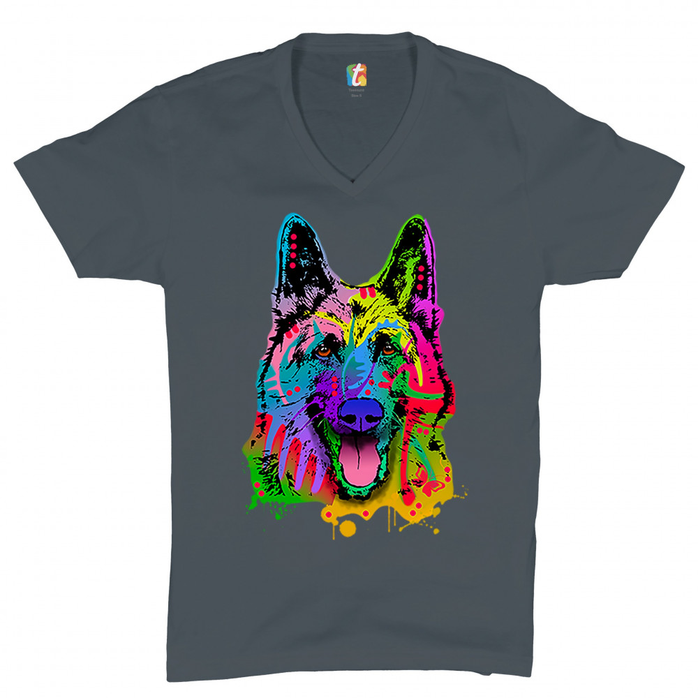 HAPPY GERMAN SHEPHERD v-neck t-shirt andy maxx i love my dog best friend tee charcoal