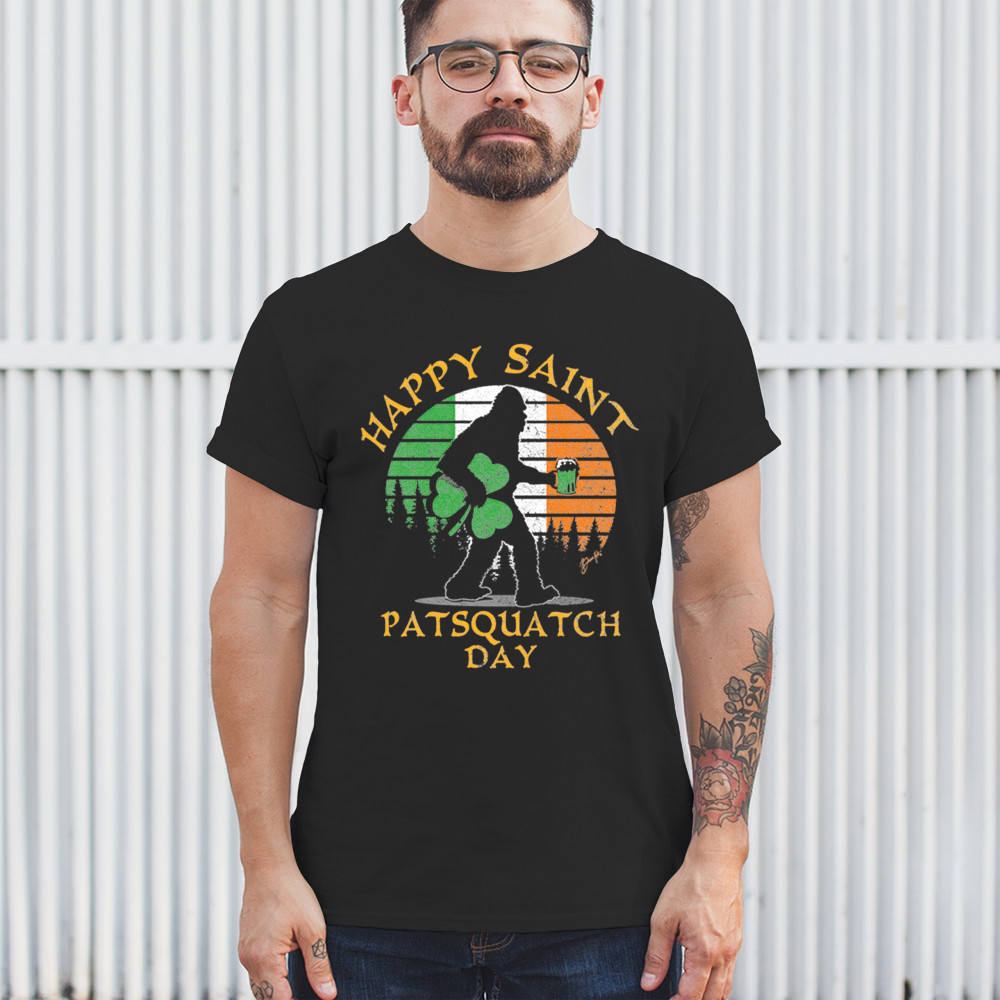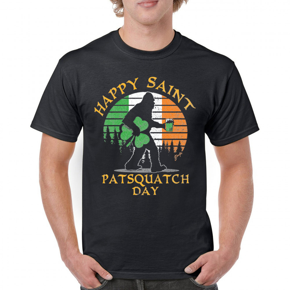 HAPPY SAINT PATSQUATCH DAY t-shirt st. patrick's big foot shamrock men's tee black