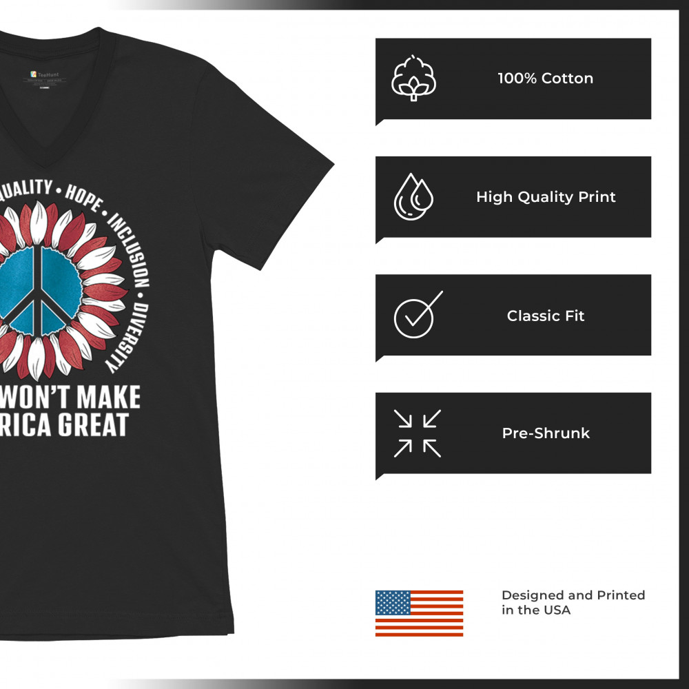 Embrace the message of love, equality, and unity with this eye-catching design. The sunflower and peace symbol represent a commitment to kindness and inclusion, rejecting hate and division. Perfect for those who support liberal values, this design is a bold statement against negativity and for a brighter future. Wear it proudly to show your belief in a diverse, united America. Let this design be a symbol of hope and progress for all.