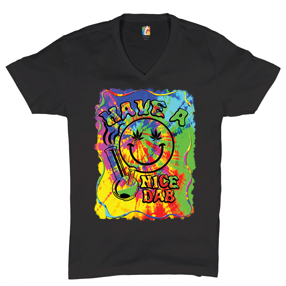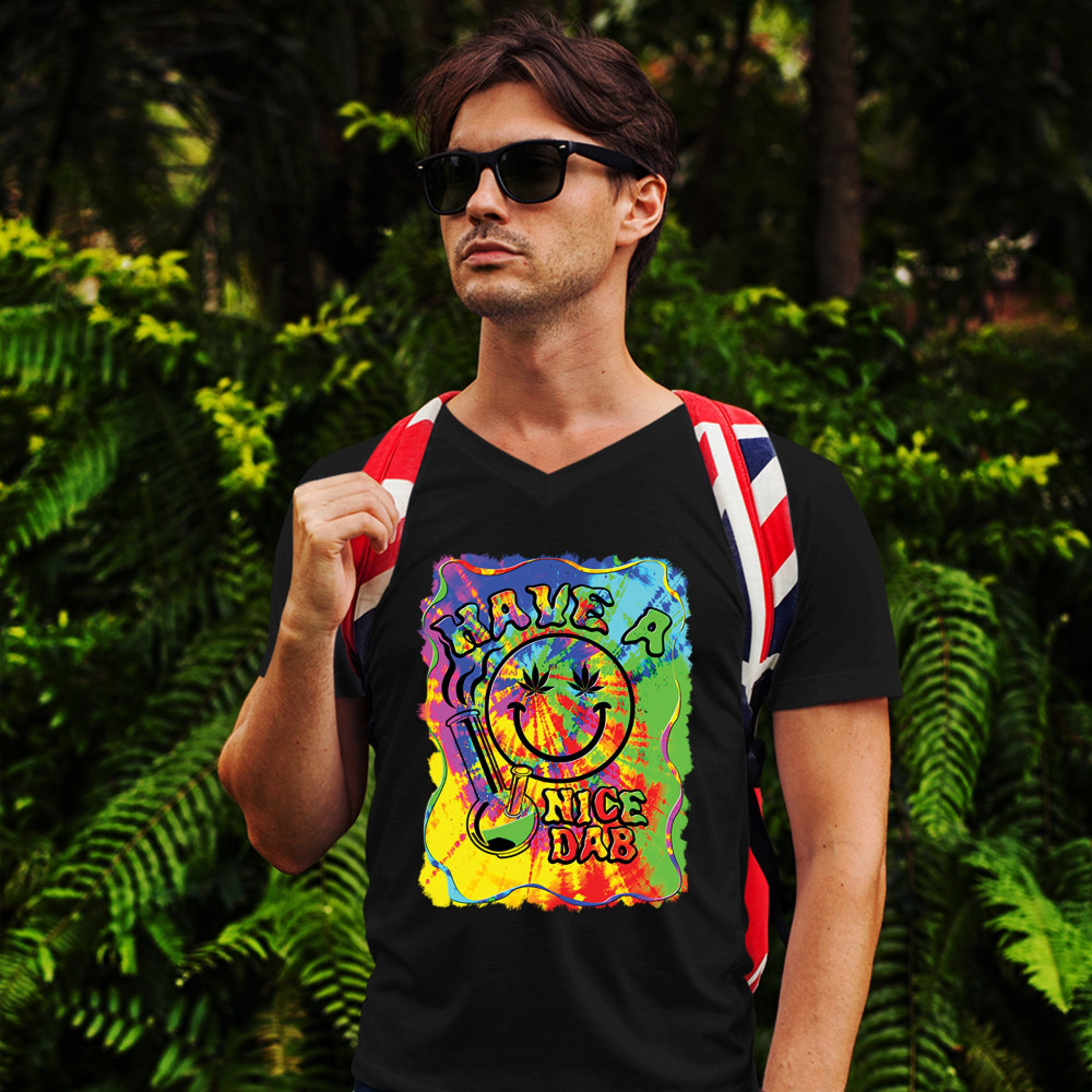 HAVE A NICE DAB v-neck t-shirt 420 happy face hitting marijuana weed bong tee black