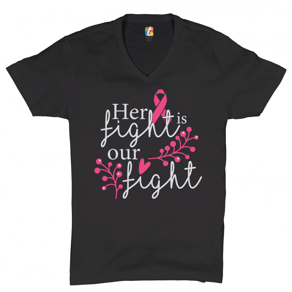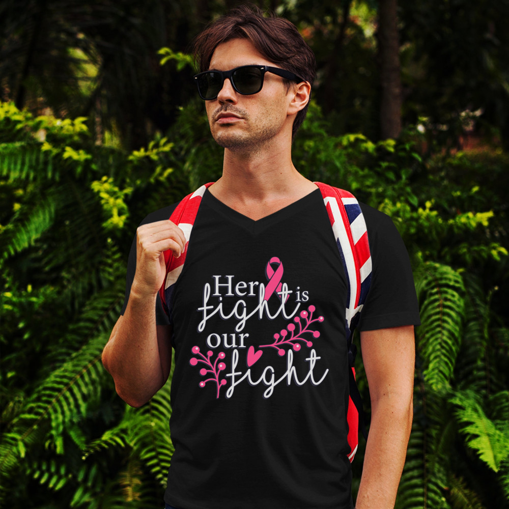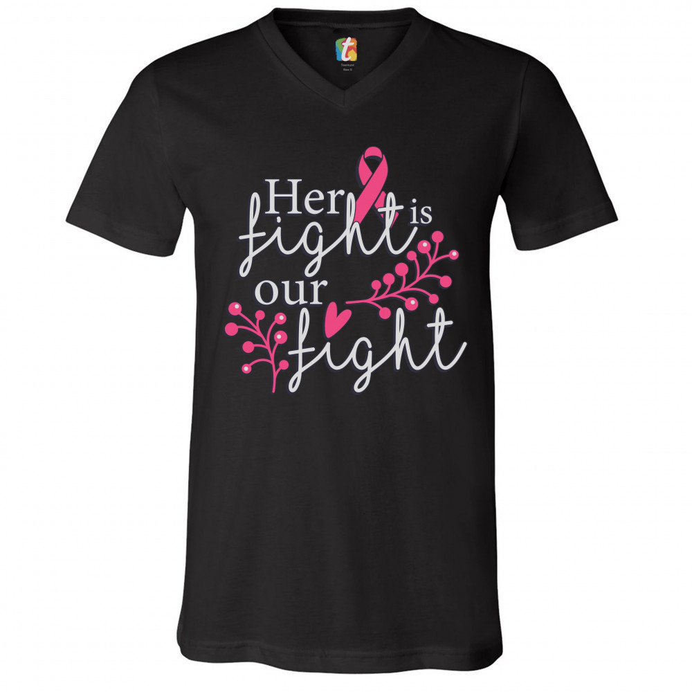 HER FIGHT IS OUR FIGHT v-neck t-shirt breast cancer support pink ribbon tee black