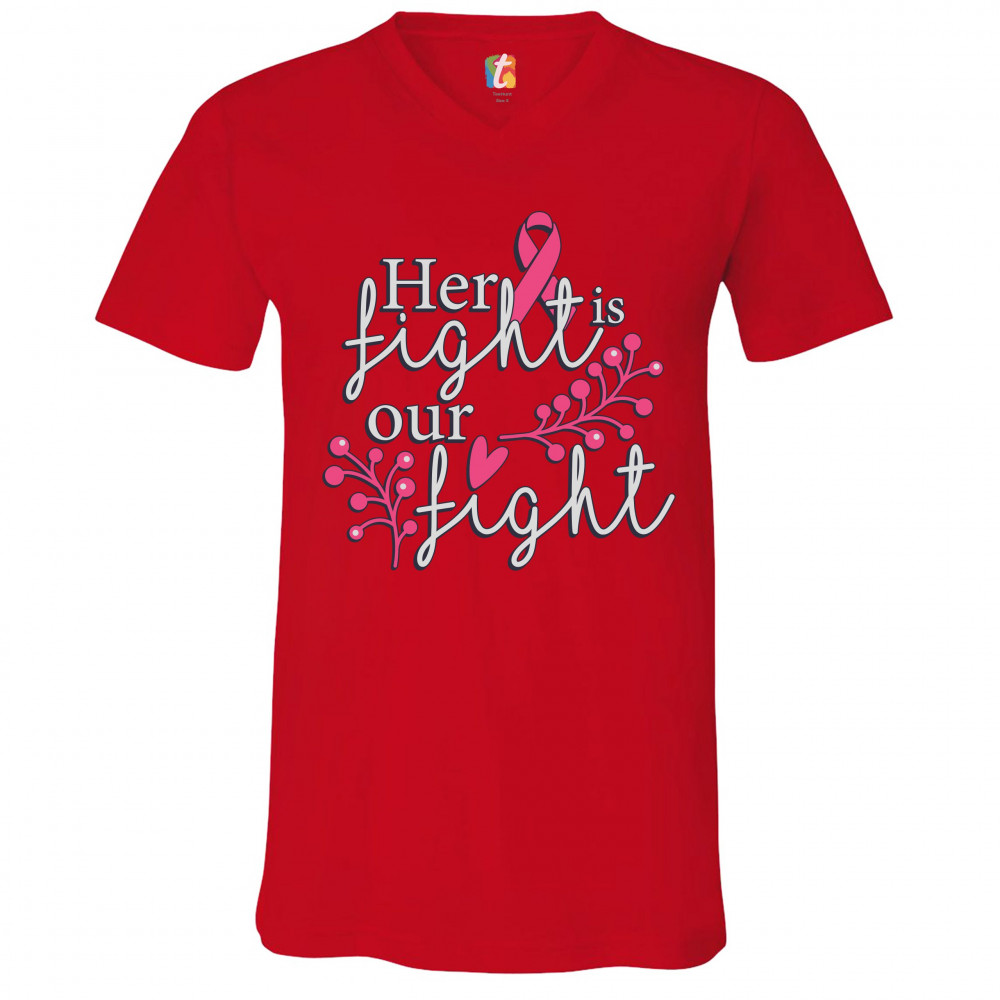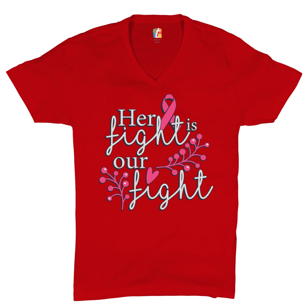 HER FIGHT IS OUR FIGHT v-neck t-shirt breast cancer support pink ribbon tee red