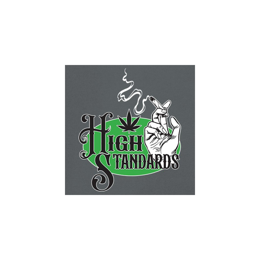 High Standards weed design with blunt humor and stoner pride. Features joint, cannabis leaf, pothead attitude, and classy chillout vibes.