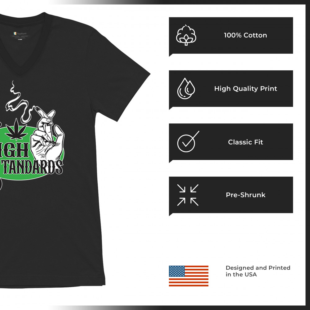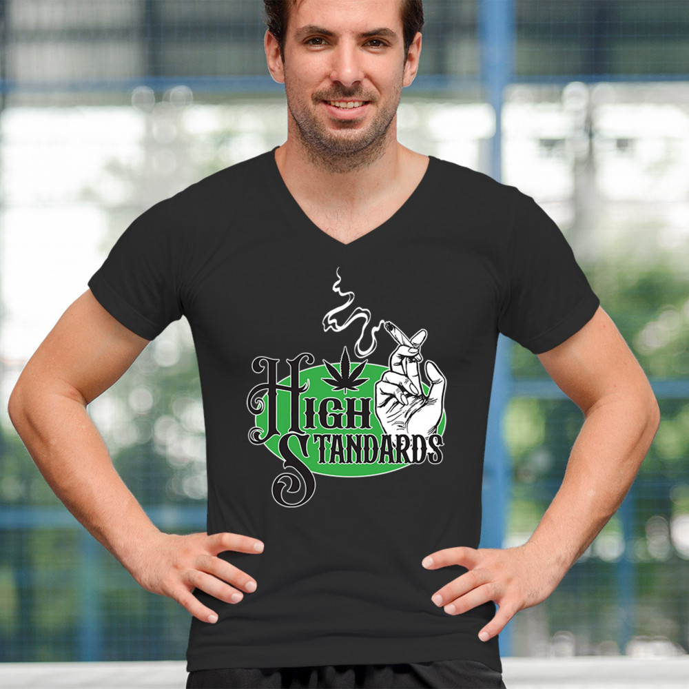 High Standards weed design with blunt humor and stoner pride. Features joint, cannabis leaf, pothead attitude, and classy chillout vibes.