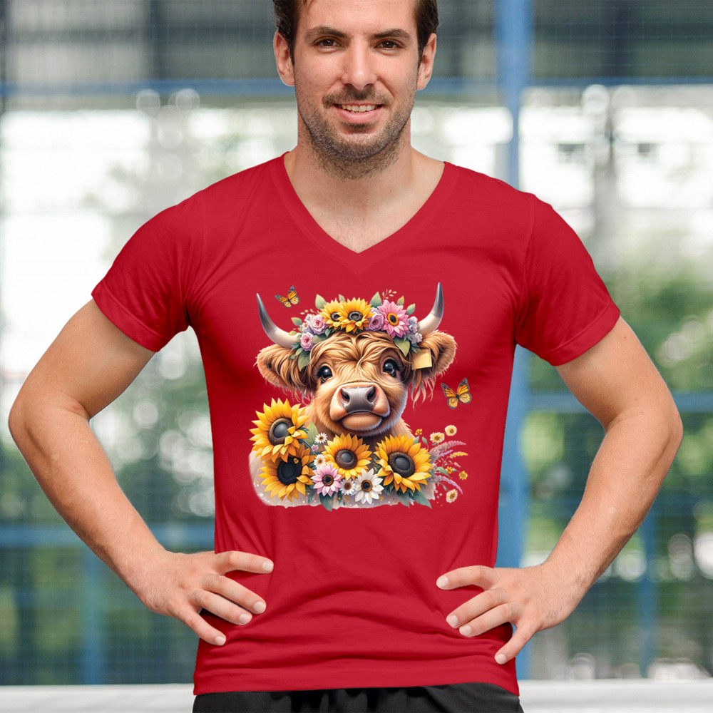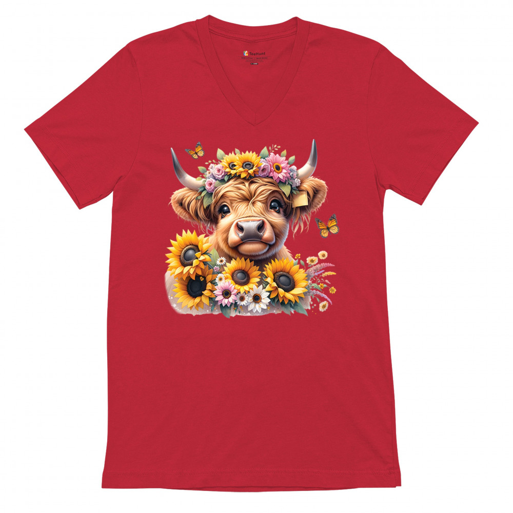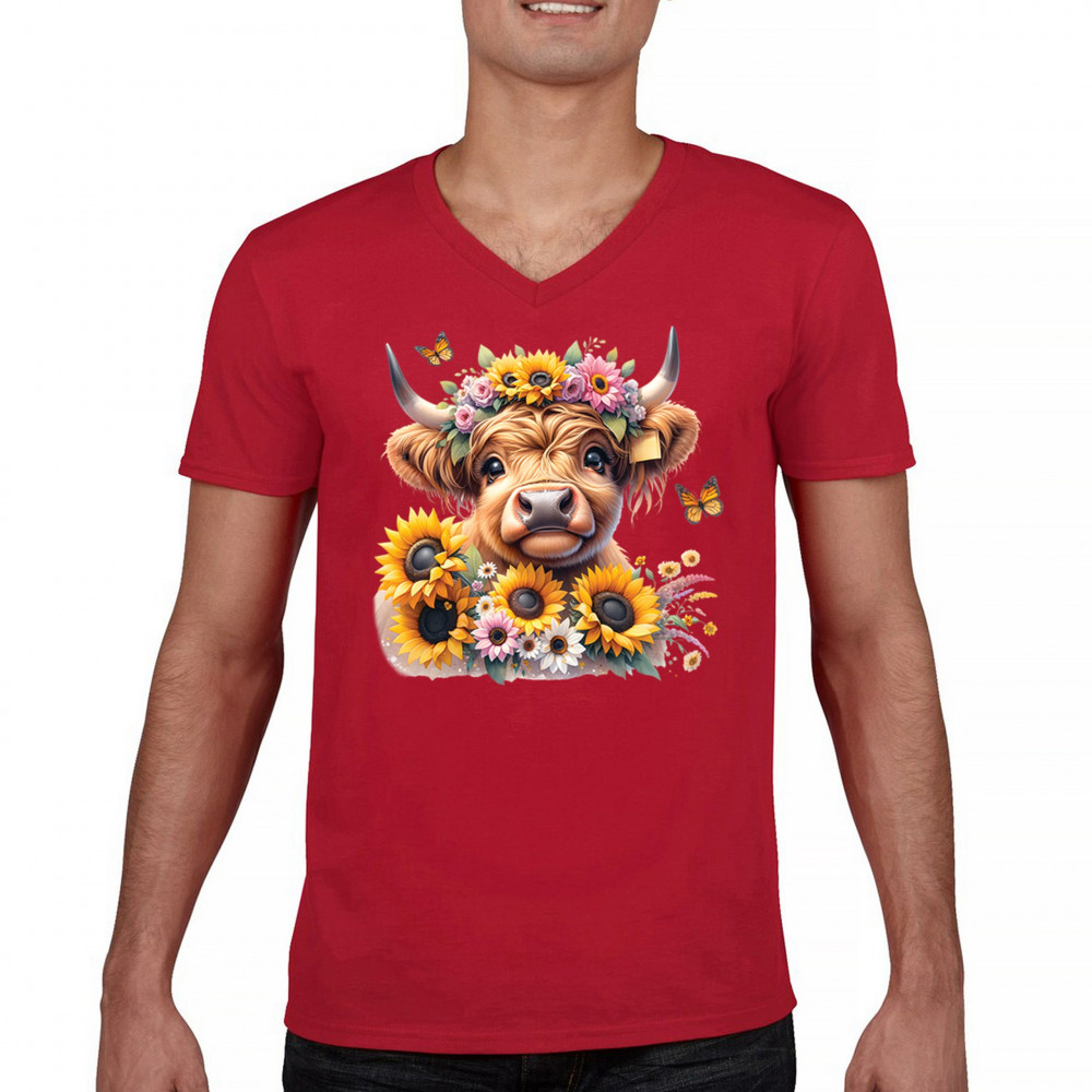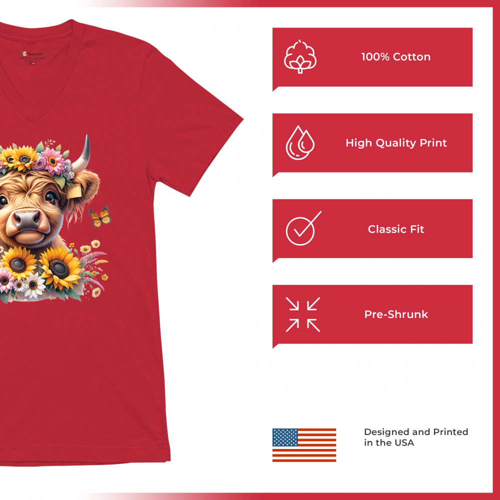 Highland Cow floral design with sunflowers and daisies, rustic farmhouse cow style, western ranch boho charm, and cozy country farmhouse shirt vibes.