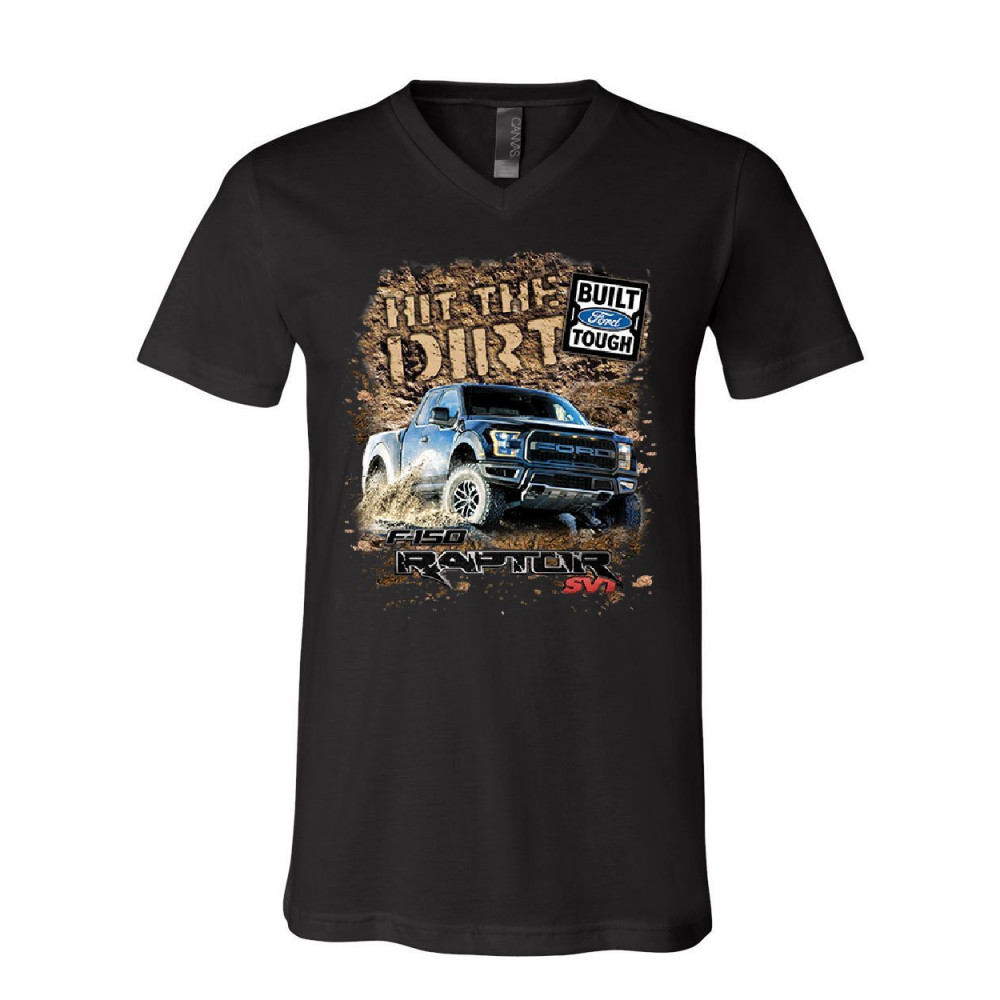 HIT THE DIRT built ford tough v-neck t-shirt f-150 raptor pickup truck tee black