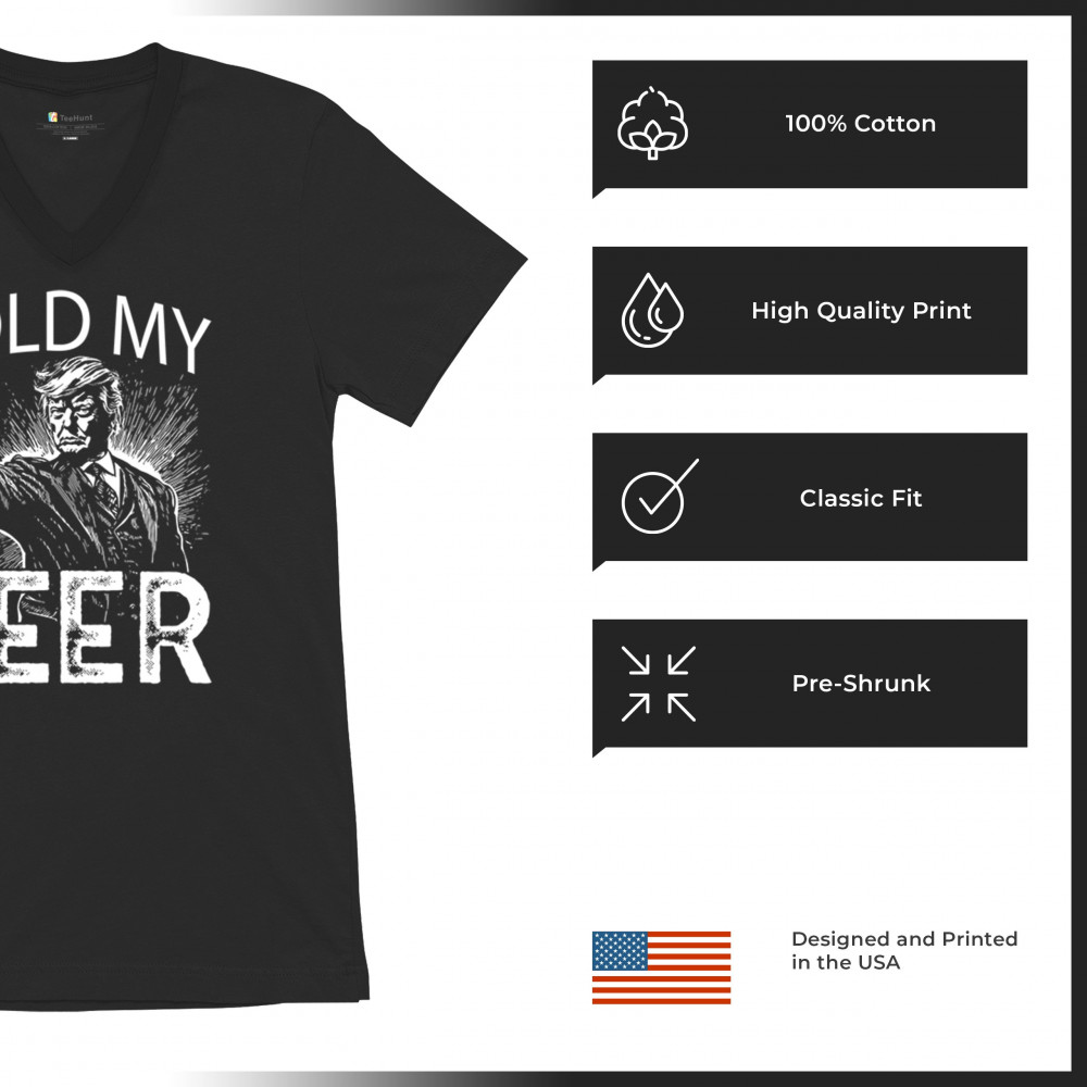 Celebrate the boldness of America First with the "Hold My Beer" design. A tribute to Trump supporters, conservatives, and proud patriots, this graphic humorously encapsulates the resilience and pride of the Red Wave movement. Perfect for rallies, casual gatherings, and those who proudly stand with Donald J. Trump, the 47th President, in the fight for freedom and the people's mandate.