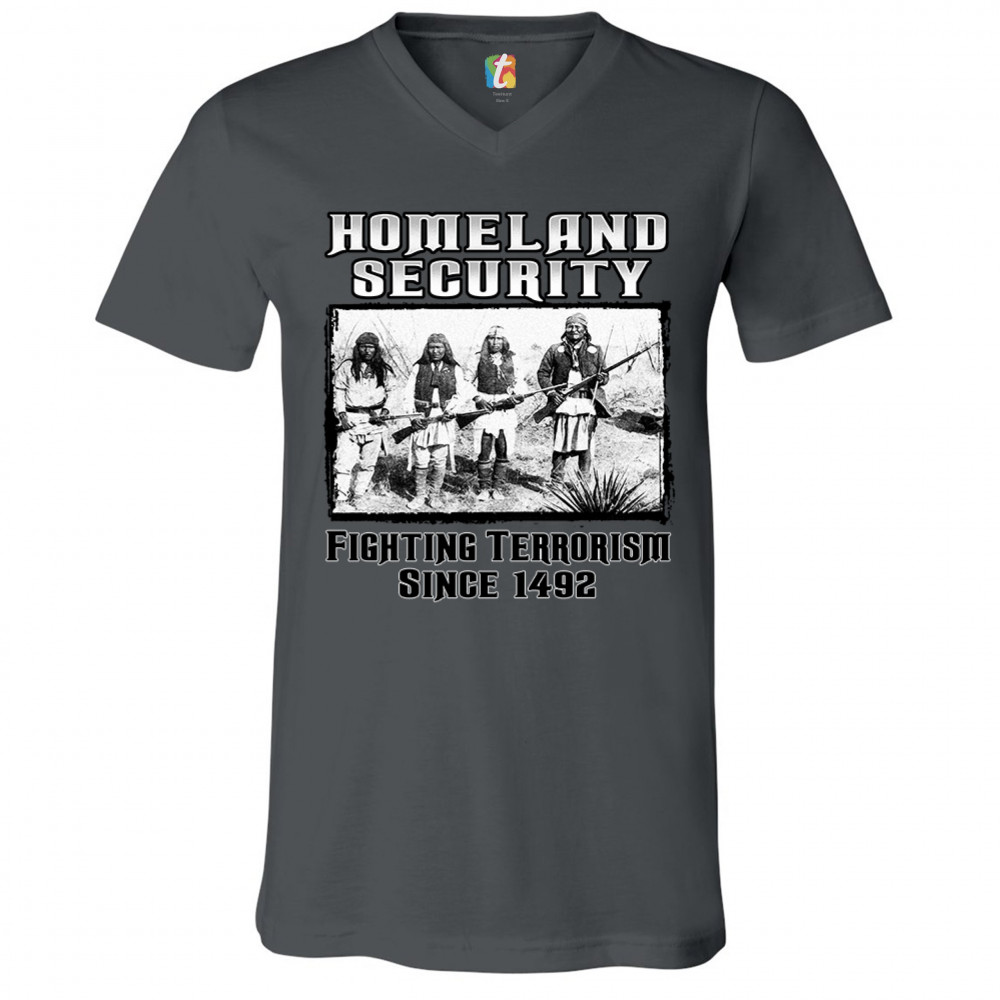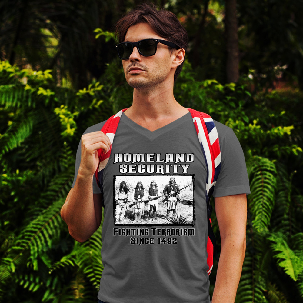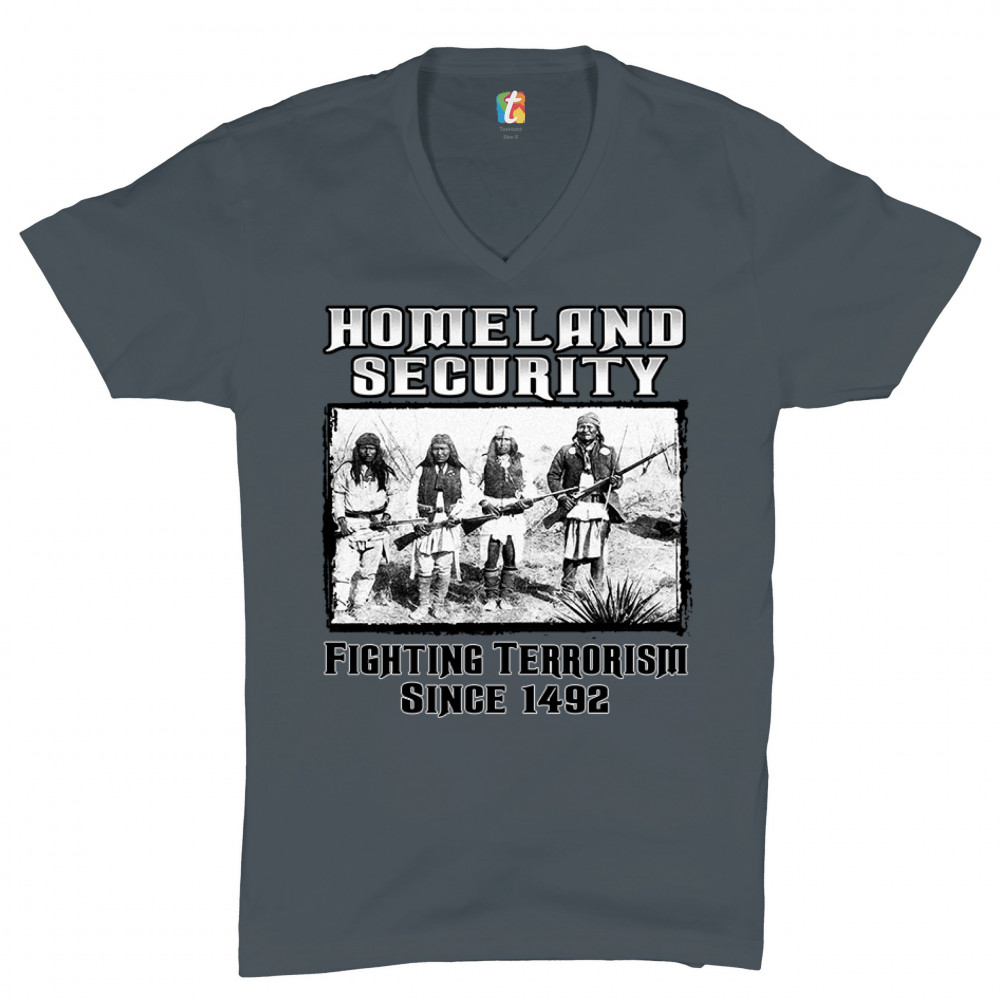 HOMELAND SECURITY v-neck t-shirt native american indigenous patriotic tee charcoal