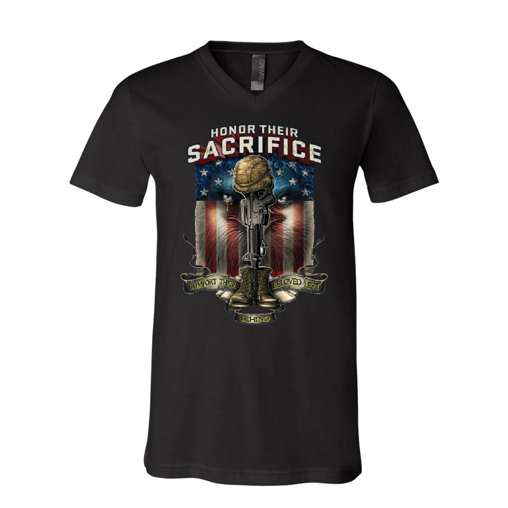 HONOR THEIR SACRIFICE v-neck t-shirt pow mia military remembrance army tee black