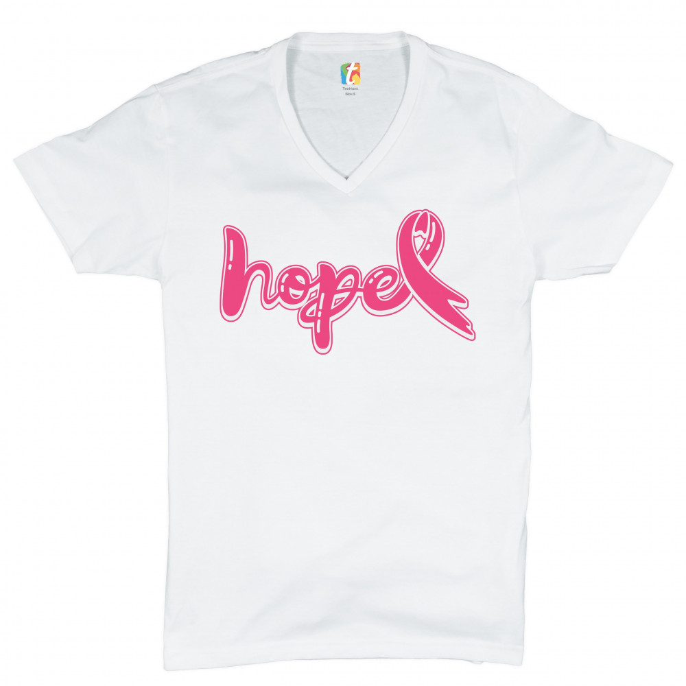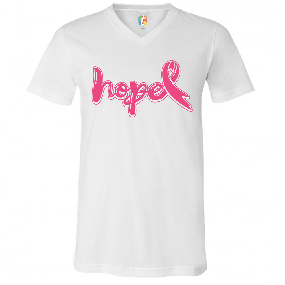 HOPE PINK RIBBON v-neck t-shirt breast cancer awareness month tee white