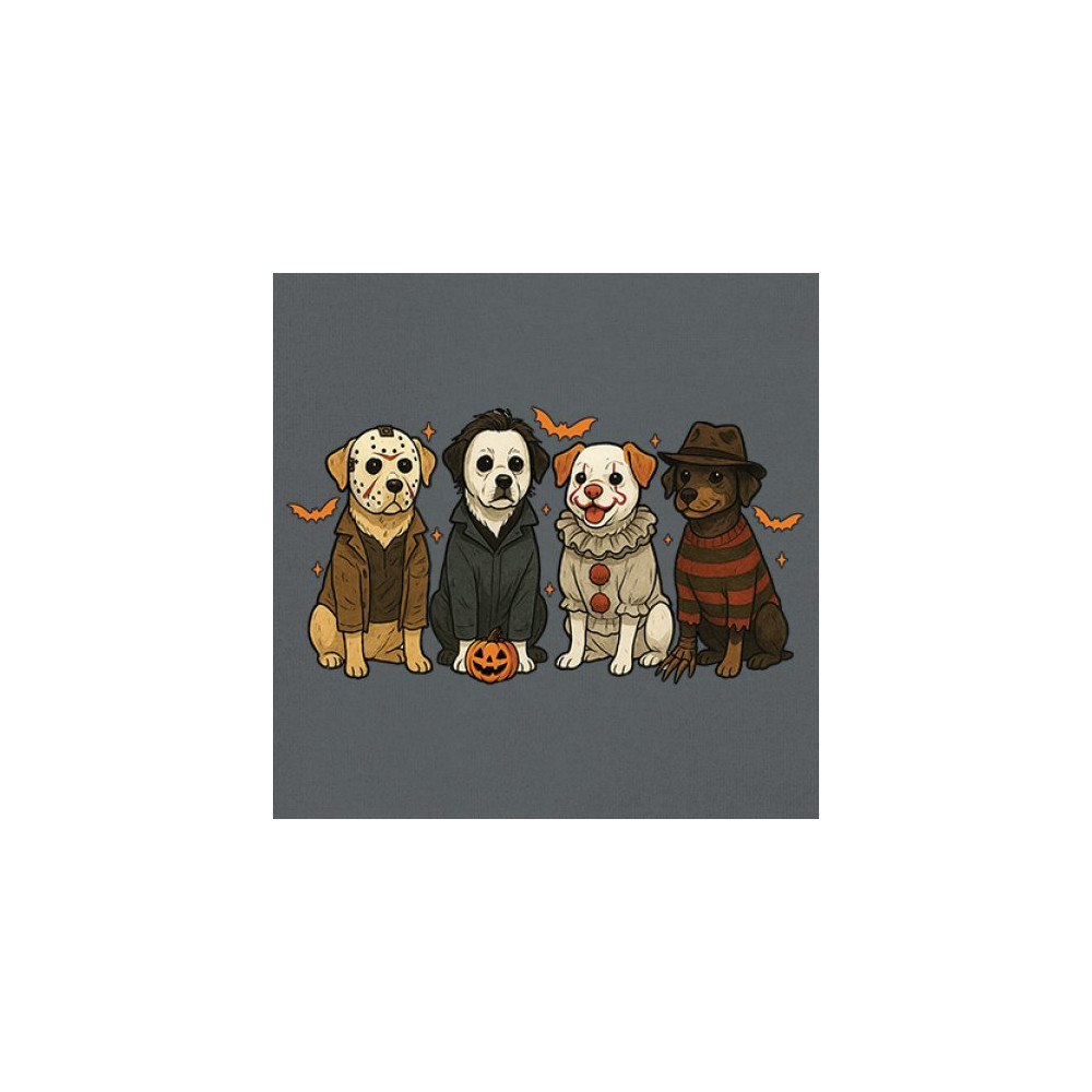 Celebrate Halloween with the Horror Dogs design featuring pups in creepy costumes inspired by spooky icons. A perfect pick for October 31 haunted house visits, autumn nights, or parties full of Halloween vibes. Whether you love dogs, witches, or pumpkin head fun, this festive design makes a playful addition to the spooky season.