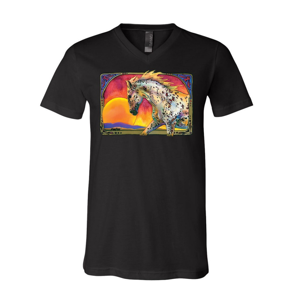 HORSE PRANCING IN SUNSET v-neck t-shirt animal wildlife mare stallion tee black