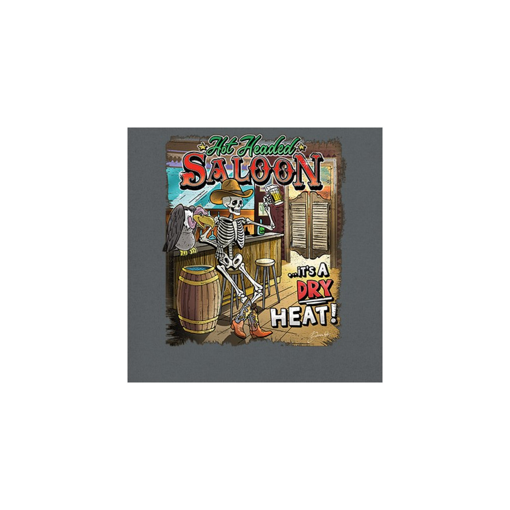Raise a glass to style with our 'Hot Headed Saloon' t-shirt! Featuring a skeletal mixologist in a desert tavern, this tee blends humor with high-stakes western drama. Crafted for those who take their style like their whiskey – strong and full of character – it's more than just apparel; it's a wearable tale of the wild, wild west. Add this conversation piece to your collection and tip your hat to a bygone era with a laugh.