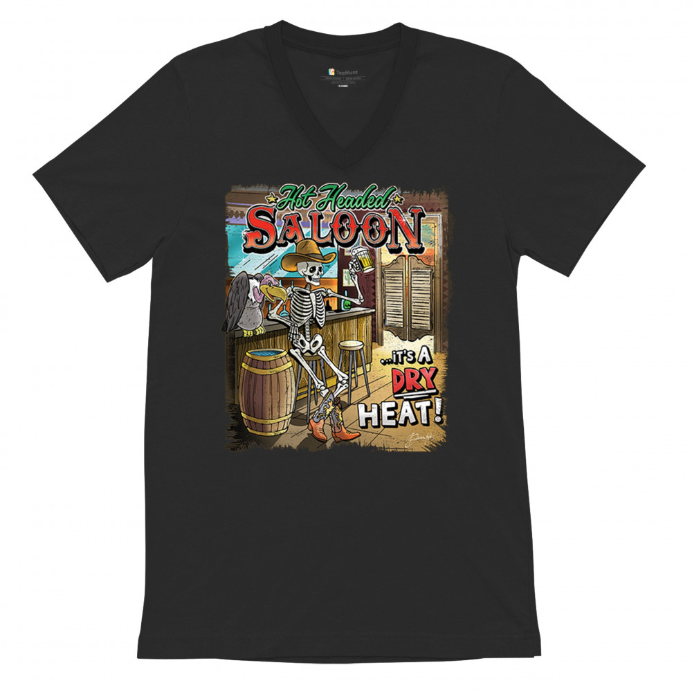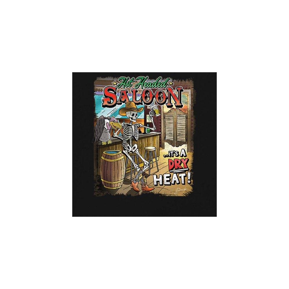 Raise a glass to style with our 'Hot Headed Saloon' t-shirt! Featuring a skeletal mixologist in a desert tavern, this tee blends humor with high-stakes western drama. Crafted for those who take their style like their whiskey – strong and full of character – it's more than just apparel; it's a wearable tale of the wild, wild west. Add this conversation piece to your collection and tip your hat to a bygone era with a laugh.