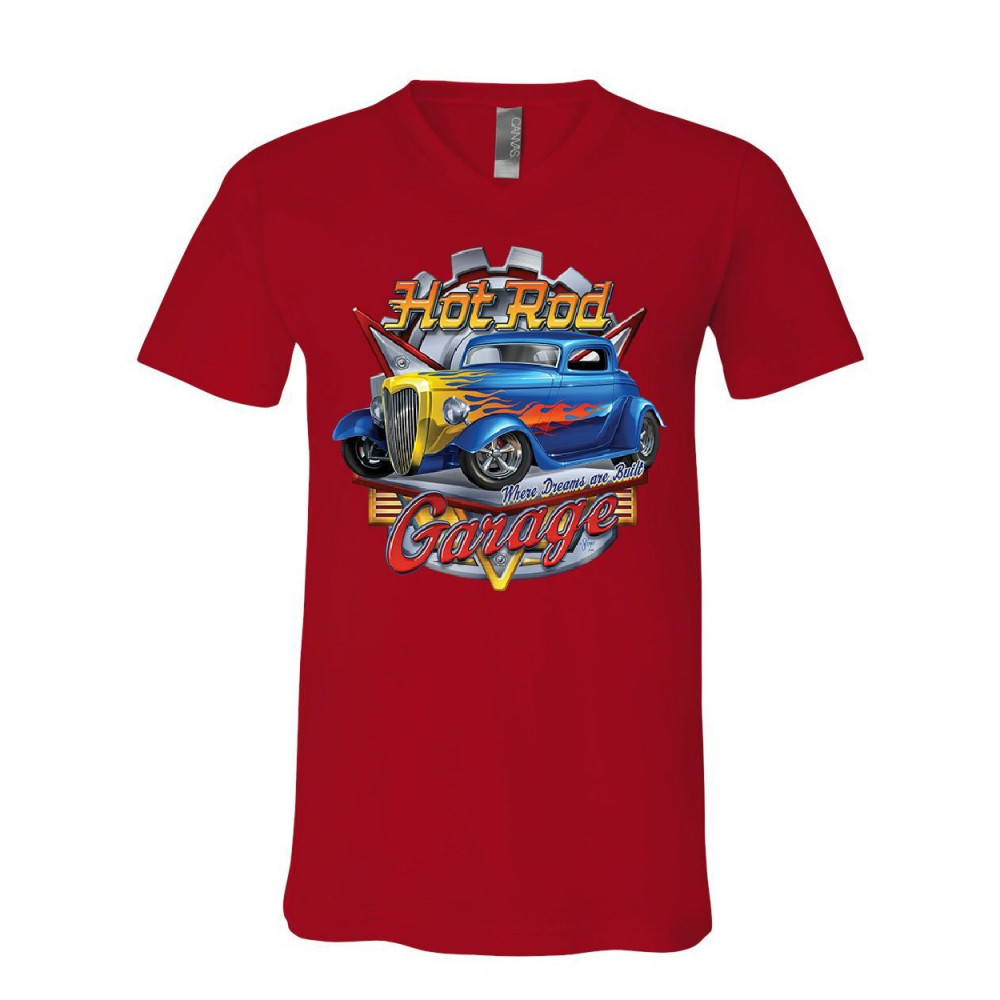 HOT ROD GARAGE v-neck t-shirt where dreams are built us classic rebuild tee red