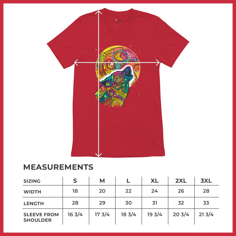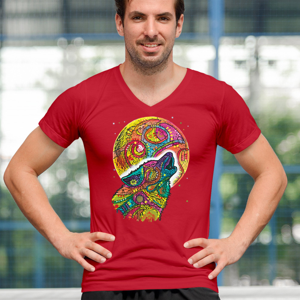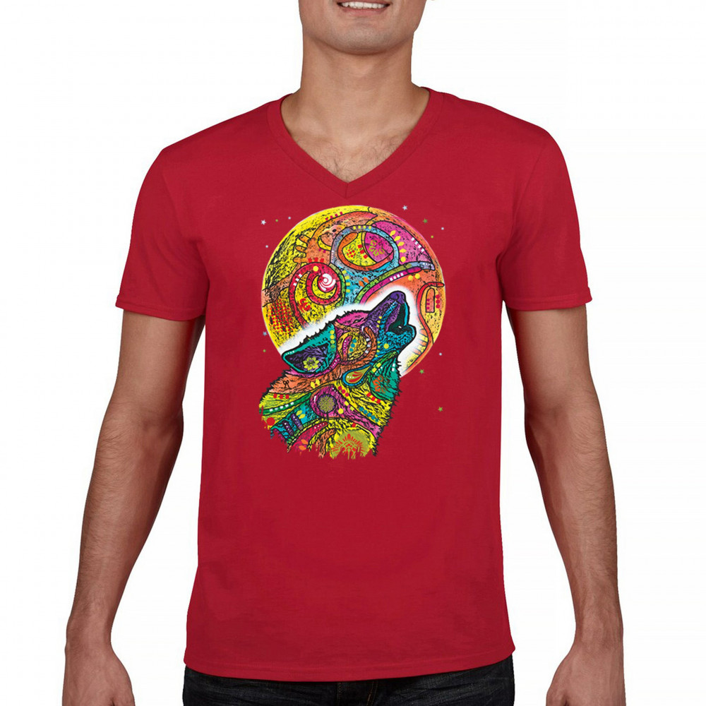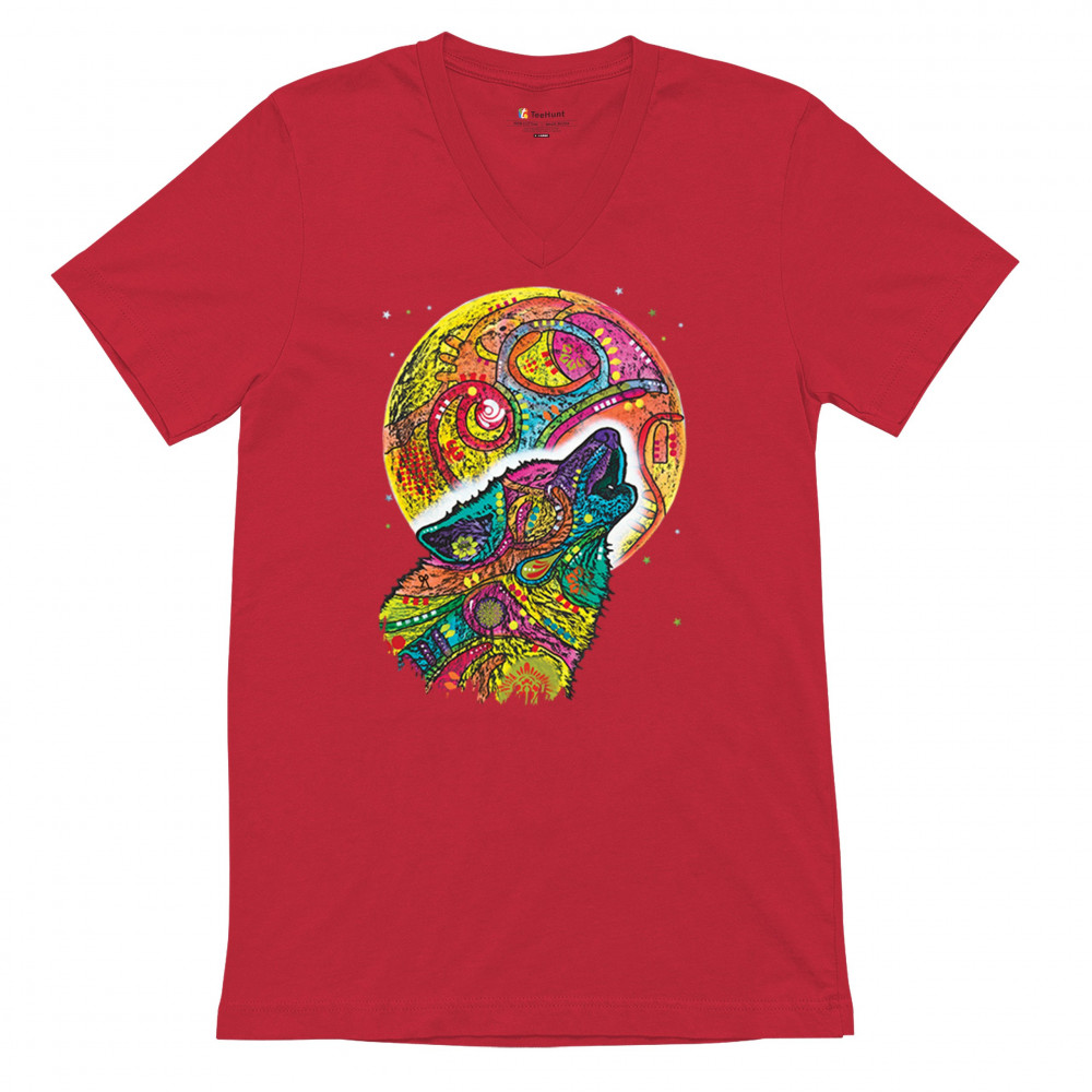 HOWLING WOLF AND MOON v-neck t-shirt dean russo colorful wild life tee red