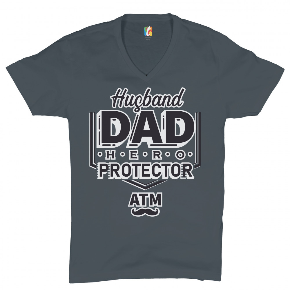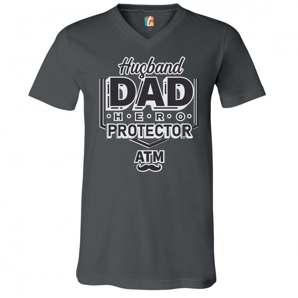 HUSBAND DAD PROTECTOR HERO ATM v-neck t-shirt father's day papa daddy tee charcoal