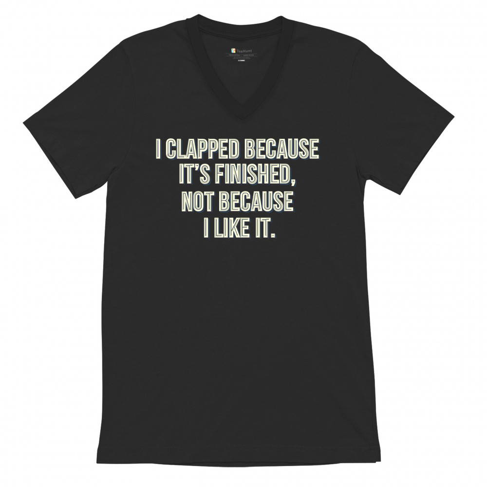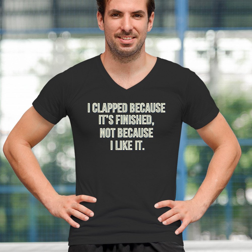 I CLAPPED BECAUSE IT'S FINISHED NOT BECAUSE I LIKE IT v-neck t-shirt funny tee black