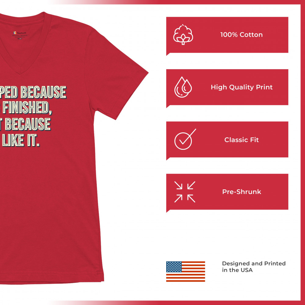 I CLAPPED BECAUSE IT'S FINISHED NOT BECAUSE I LIKE IT v-neck t-shirt funny tee red
