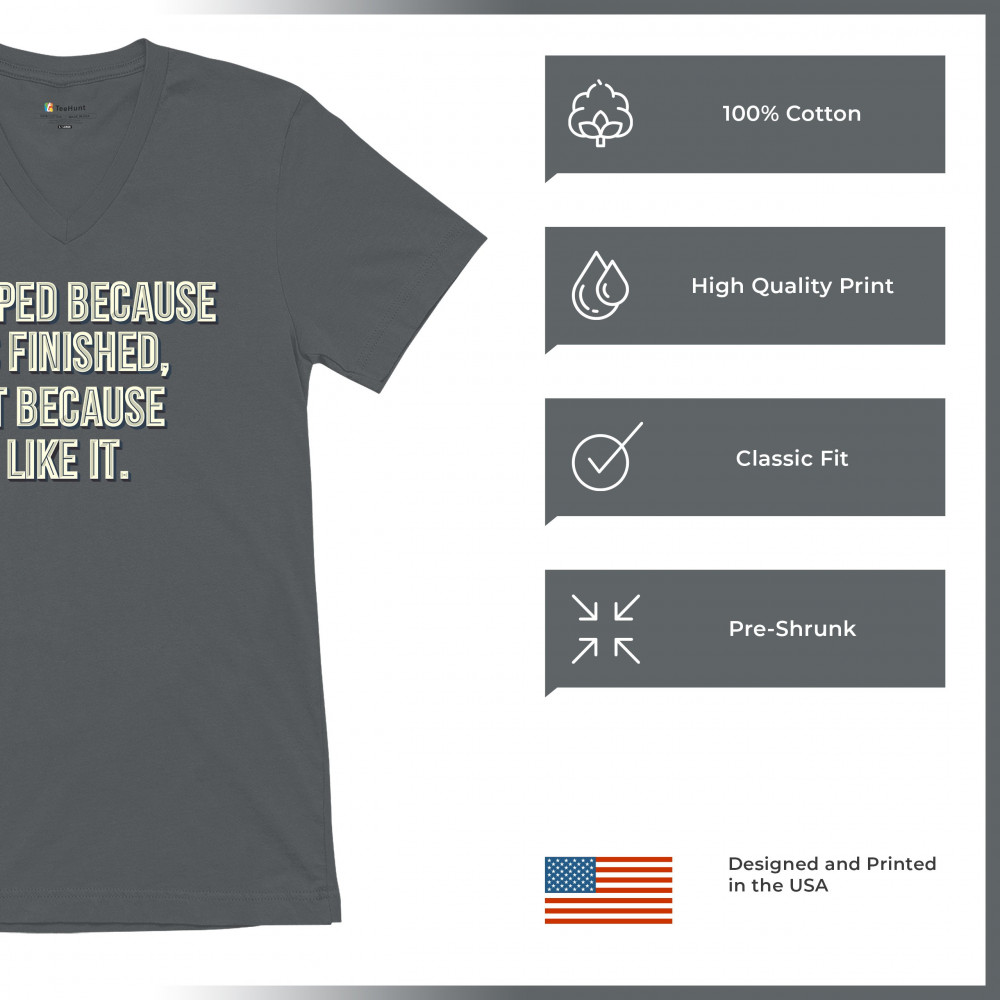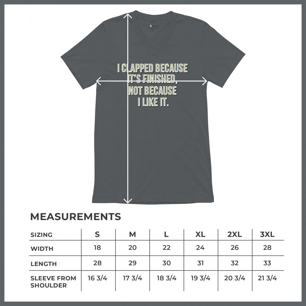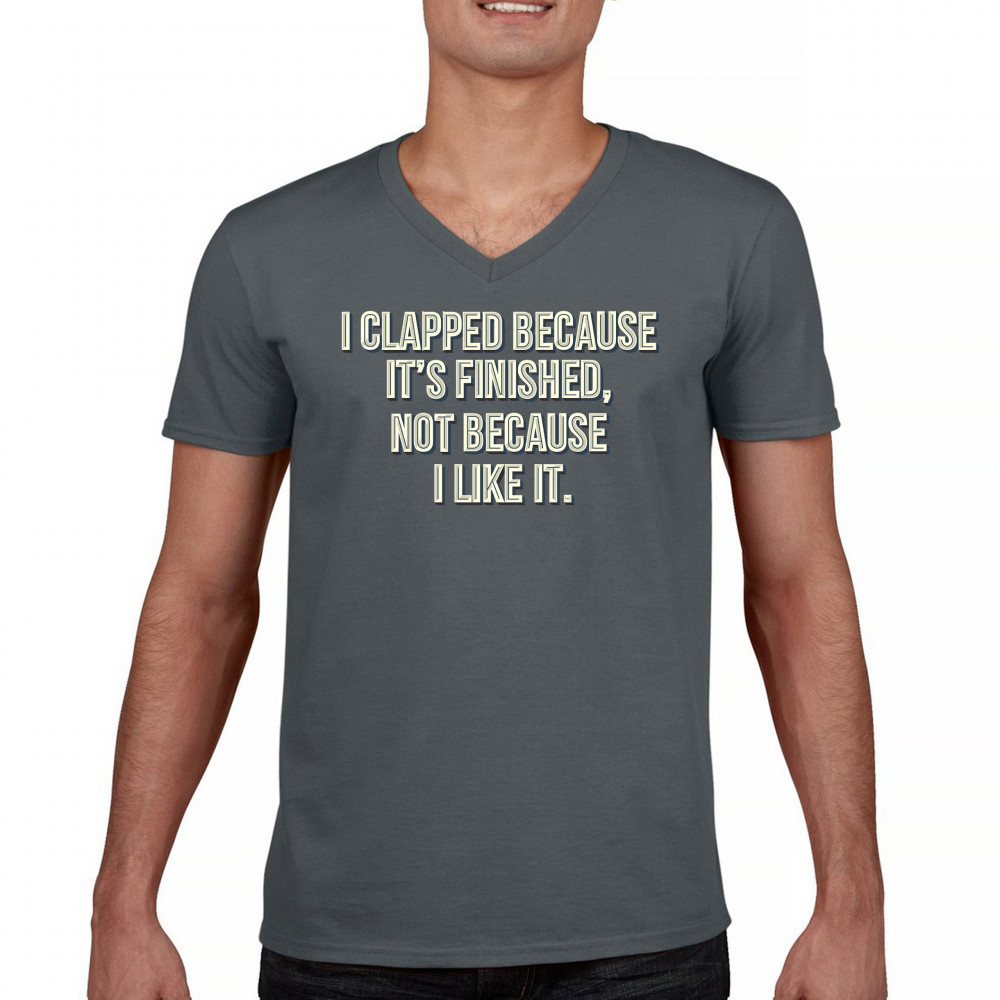 I CLAPPED BECAUSE IT'S FINISHED NOT BECAUSE I LIKE IT v-neck t-shirt funny tee charcoal