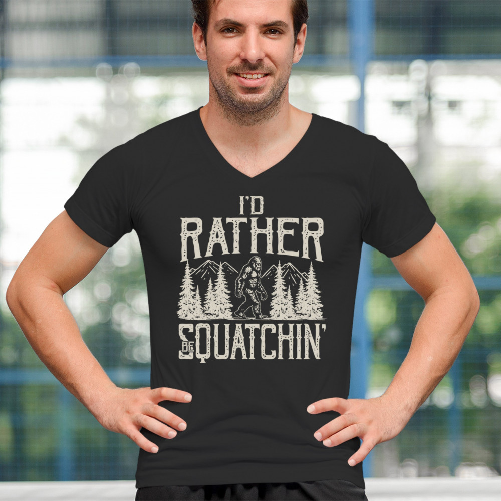"I’d Rather Be Squatchin’" – A bold design for Bigfoot fans and outdoor adventurers, featuring Sasquatch in a wilderness setting. Perfect for hikers and cryptid enthusiasts!